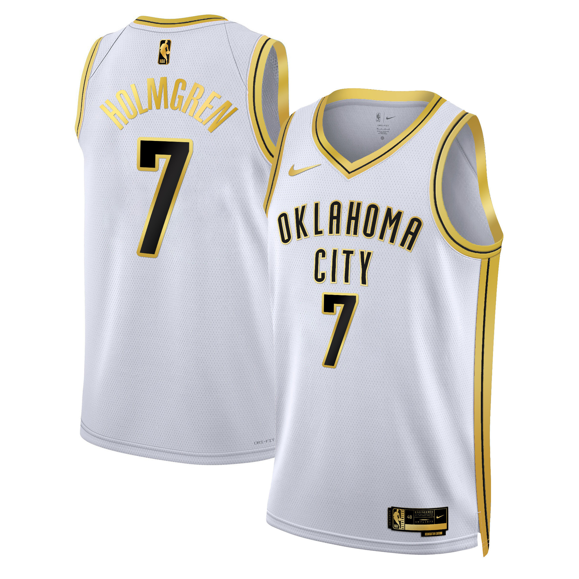 Josh Giddey Men’s Oklahoma City Thunder Swingman White Gold Jersey – All Stitched