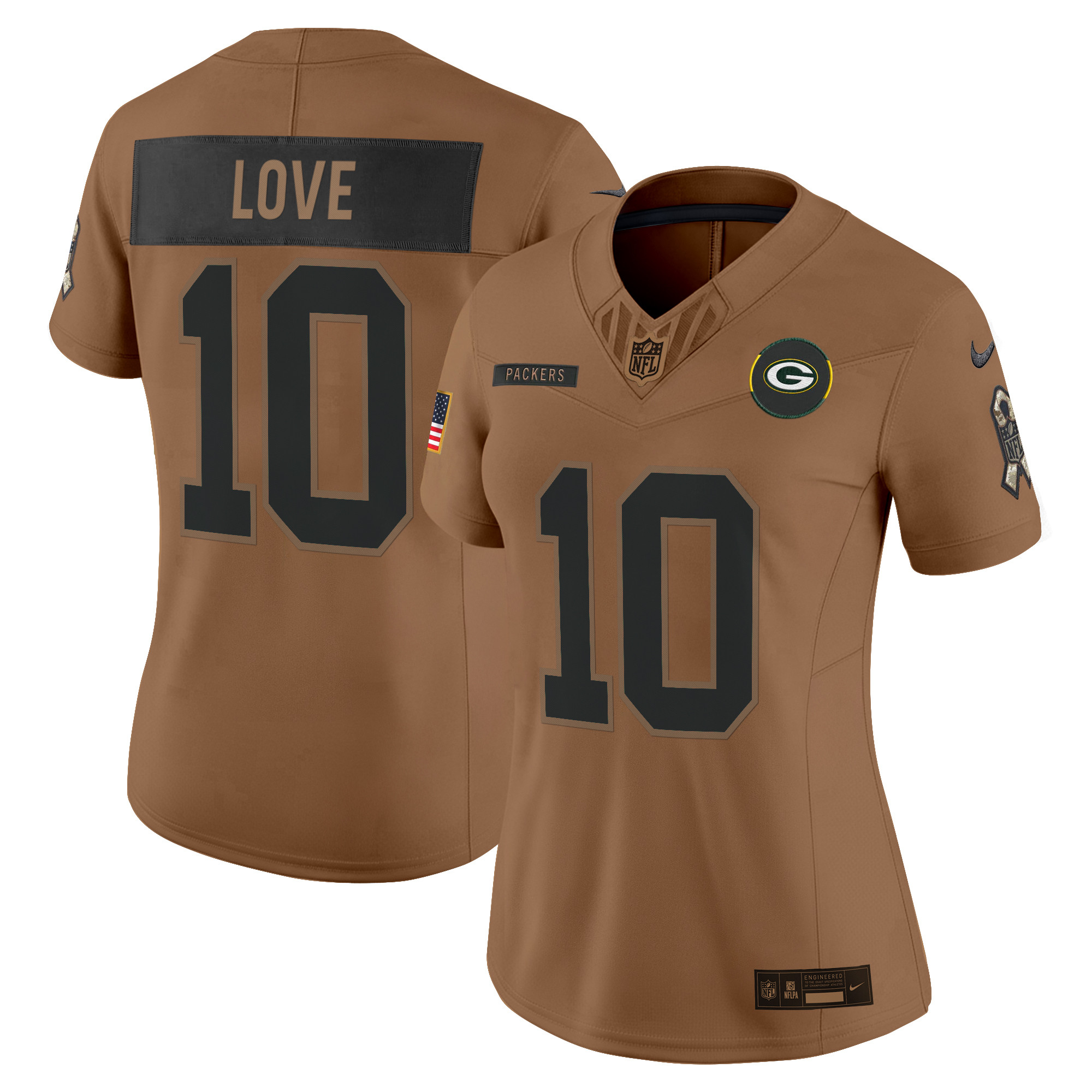 Josh Jacobs Women’s Green Bay Packers 2025 Salute to Service Vapor Limited Brown Jersey – All Stitched