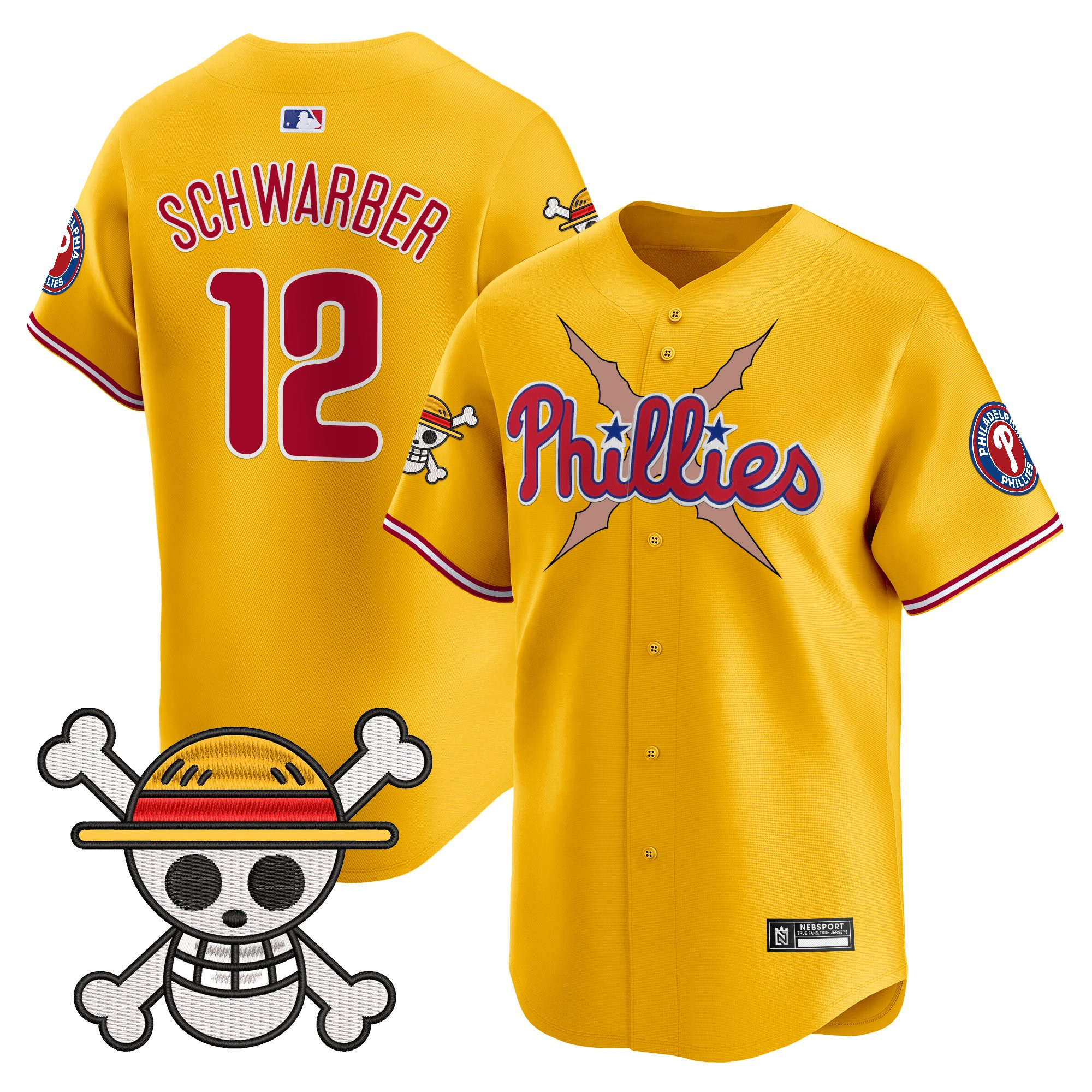 J.T.Realmuto Men’s Philadelphia Phillies x One Piece 2025 Vapor Premier Limited Gold Jersey – All Stitched