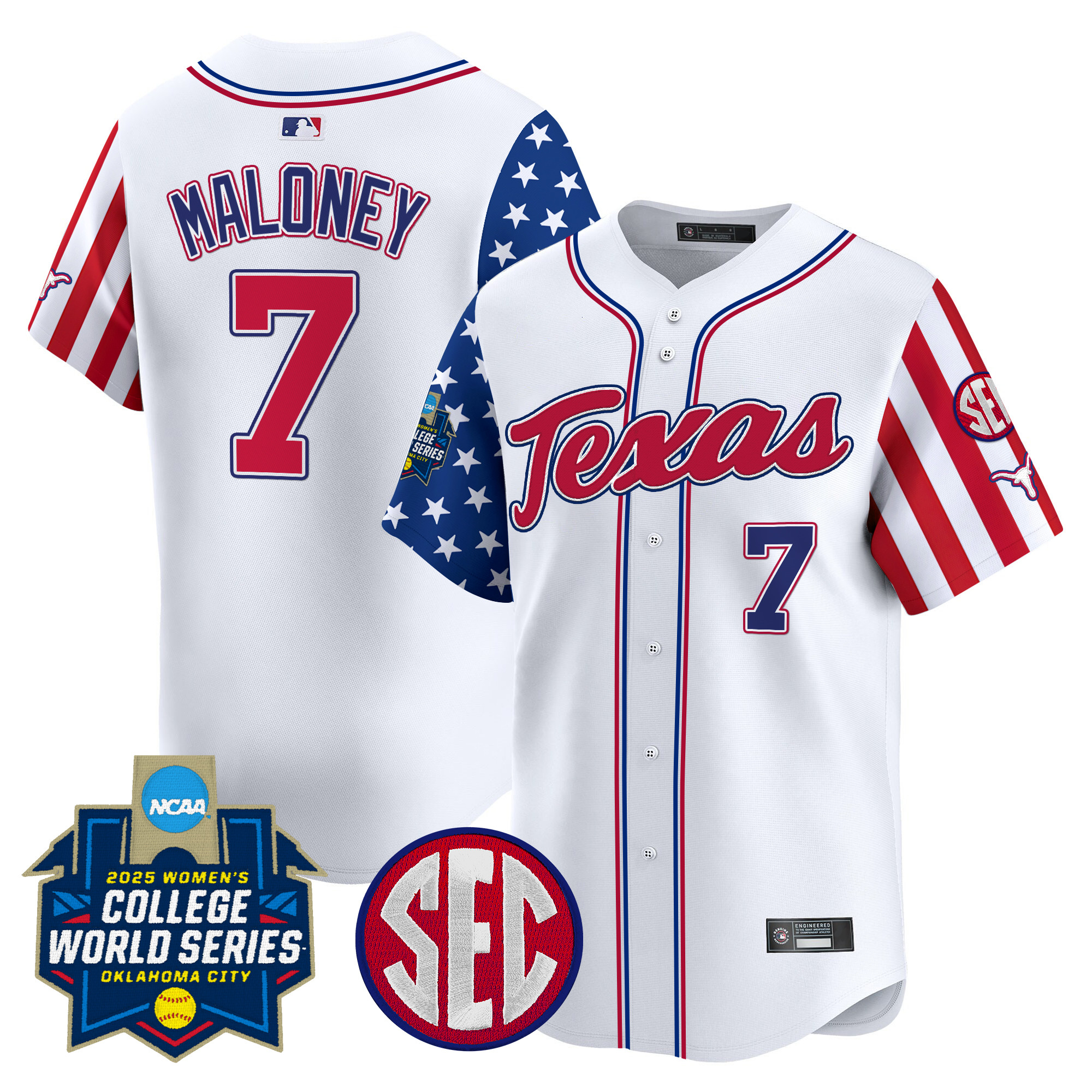 Kaydee Bennett Men’s size – Texas Longhorns Softball 2025 Independence Day Vapor Premier Limited White Jersey – All Stitched