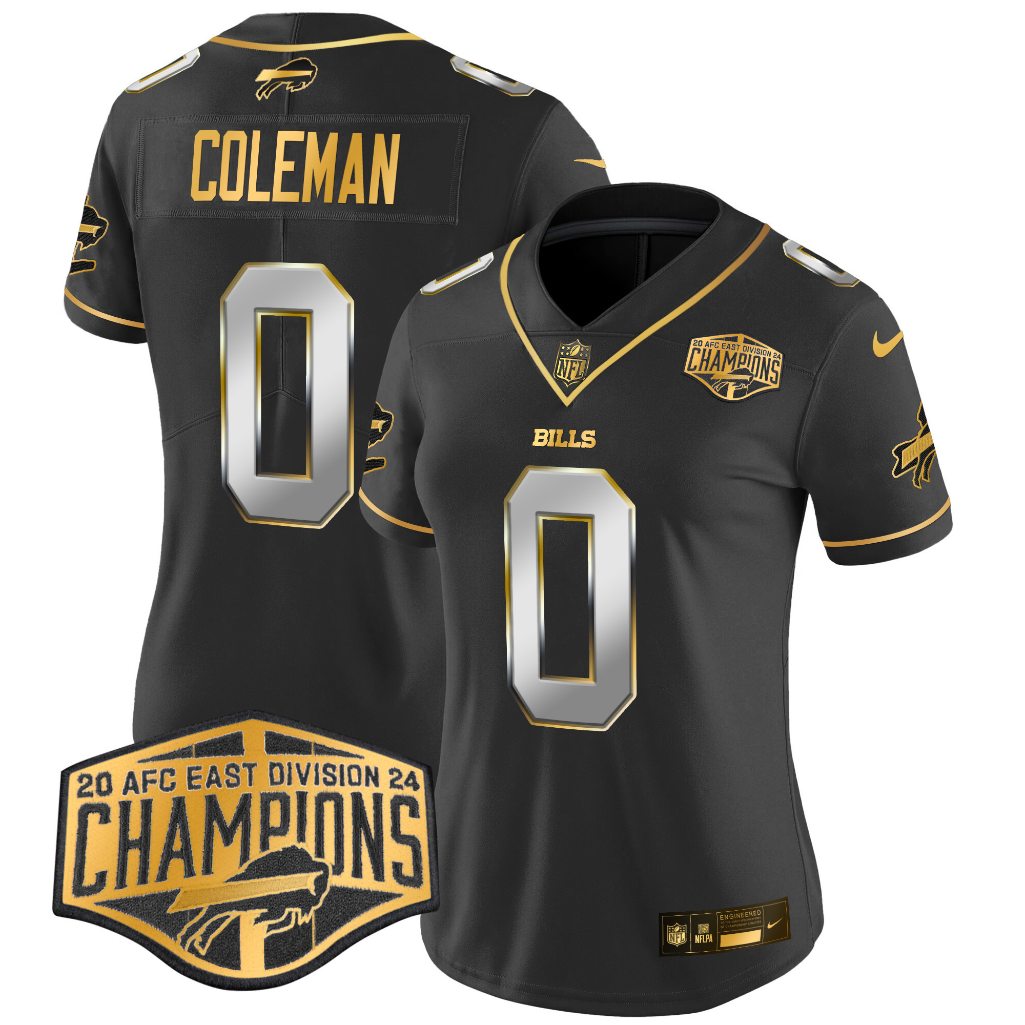Khalil Shakir Women’s Buffalo Bills 2024 AFC East Division Champions Gold Vapor Limited Black Limited Jersey – All Stitched