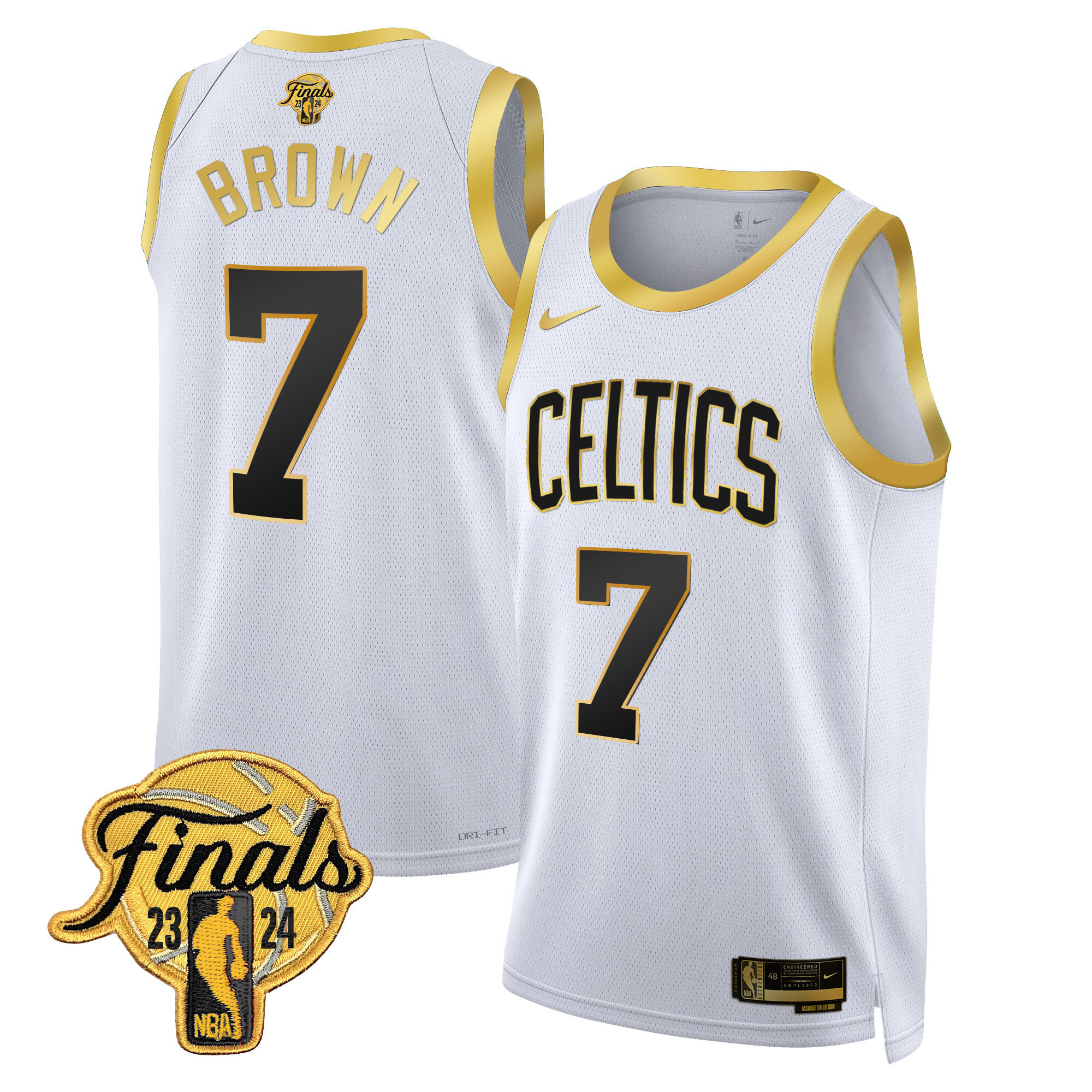 Kristaps Porzingis Men’s Boston Celtics 2024 Finals Patch Swingman White Gold Jersey – All Stitched