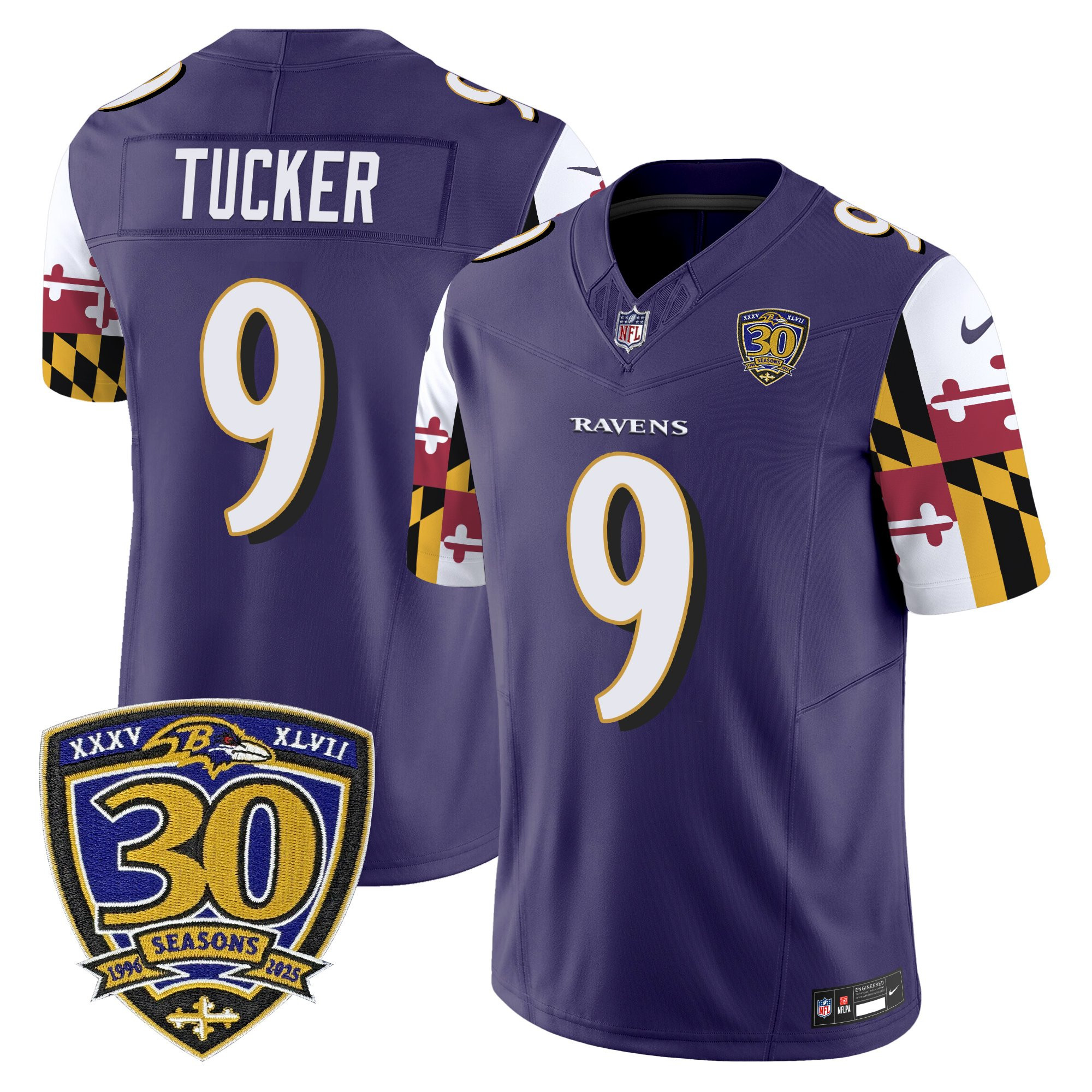 Lamar Jackson Men’s Baltimore Ravens ‘Maryland Flag Edition’ Vapor Limited Purple Jersey – 30th Anniversary Patch – All Stitched