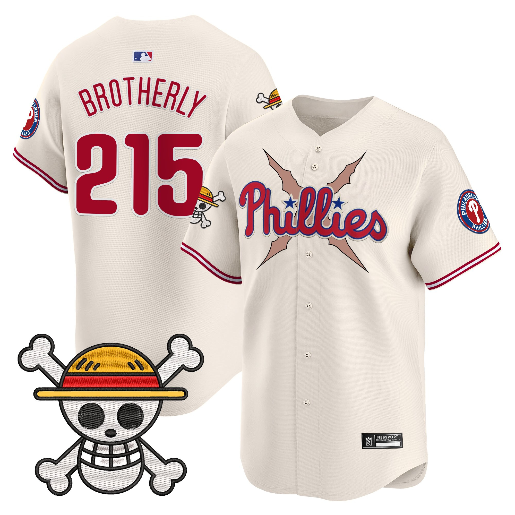 Luffy Men’s Philadelphia Phillies x One Piece 2025 Vapor Premier Limited Cream Jersey – All Stitched