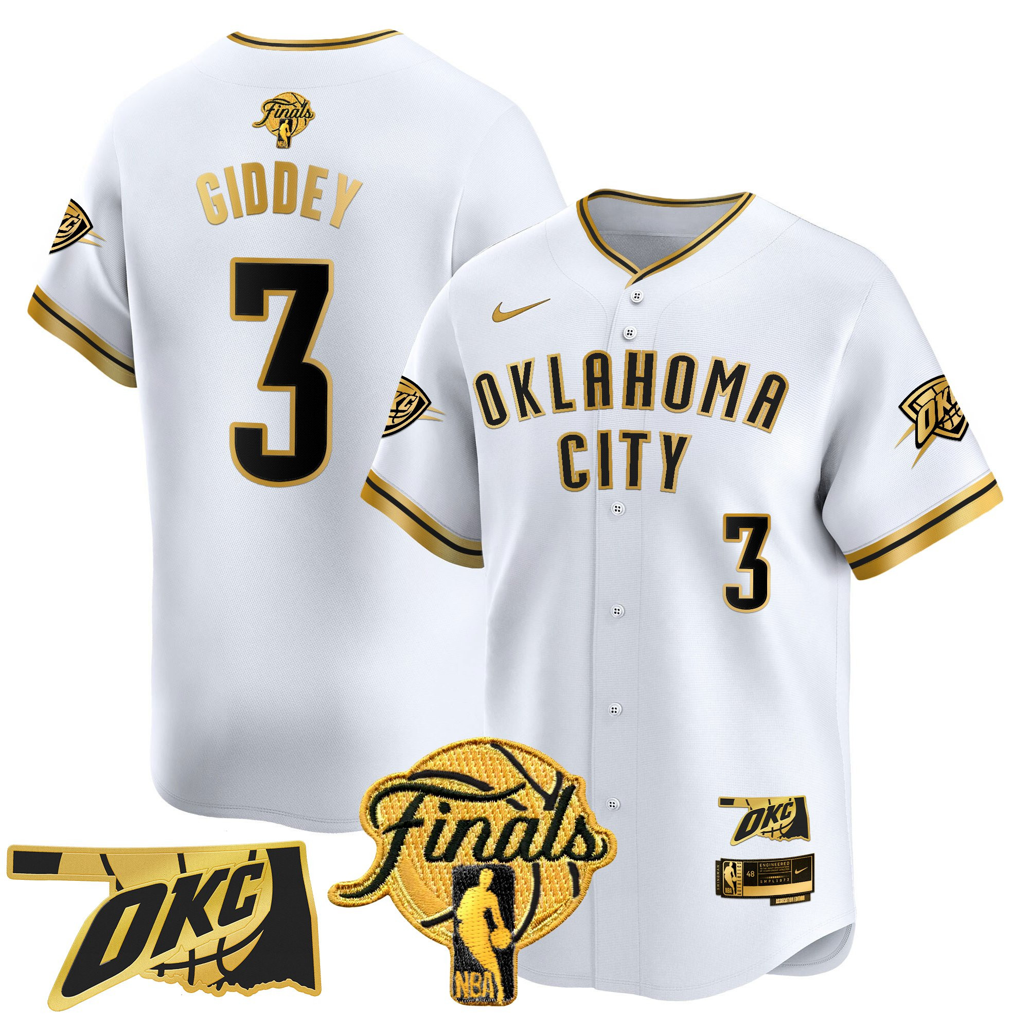 Luguentz Dort Men’s Oklahoma City Thunder 2025 Finals Vapor Baseball White Gold Jersey – All Stitched