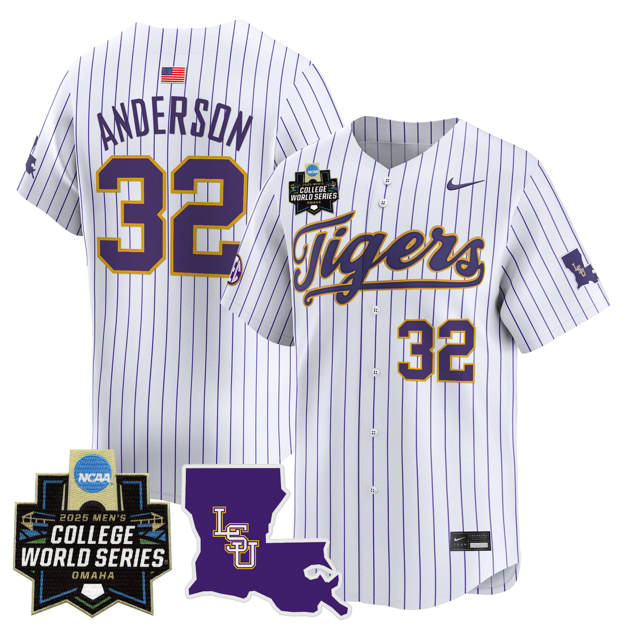 Luis Hernandez Men’s LSU Tigers 2025 World Series Vapor Premier Limited Pinstripe Jersey – All Stitched