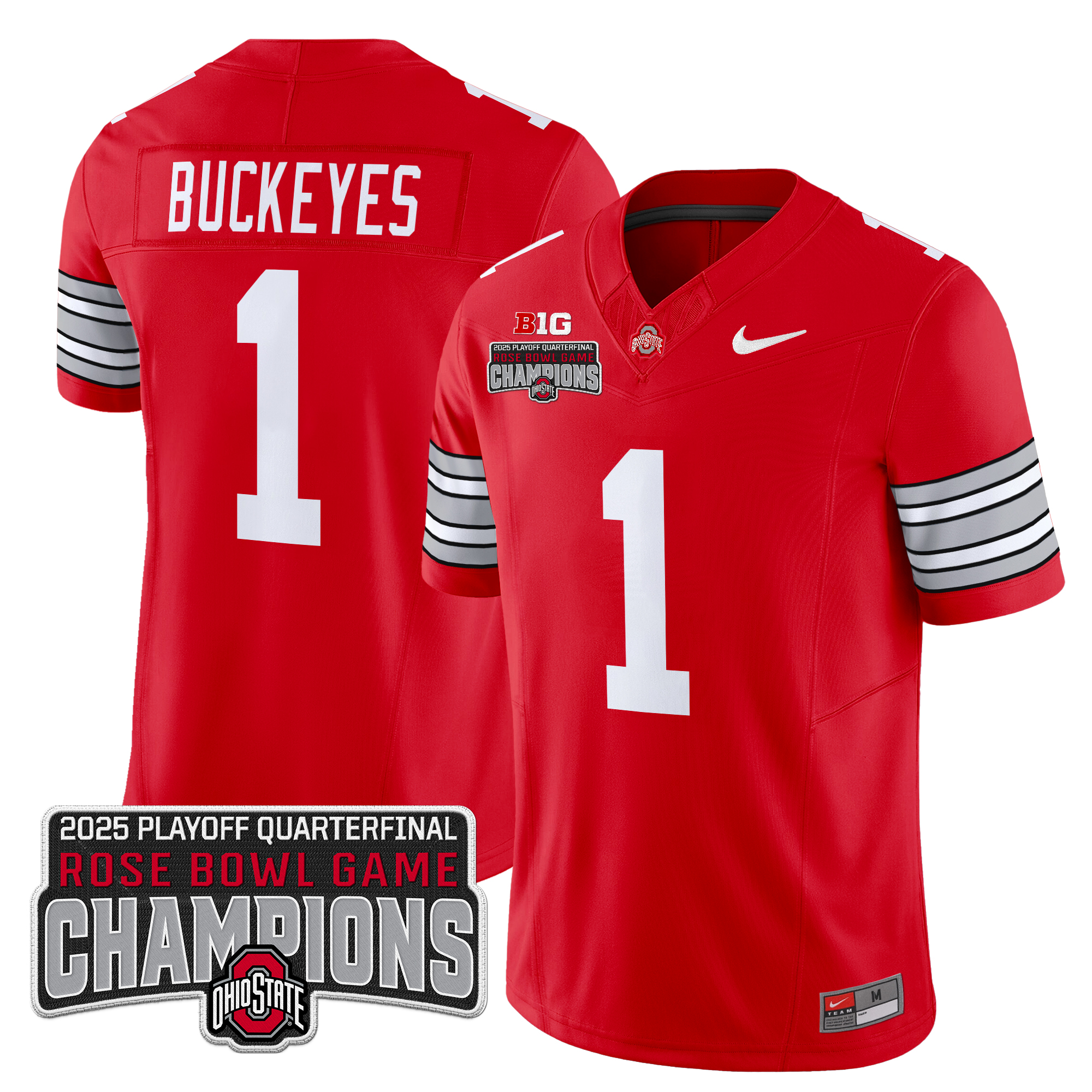 Marvin Harrison Jr. Men’s Ohio State Buckeyes ‘Heritage Stripe’ 2025 Playoff Rose Bowl Champions Patch Vapor Limited Red Jersey – All Stitched