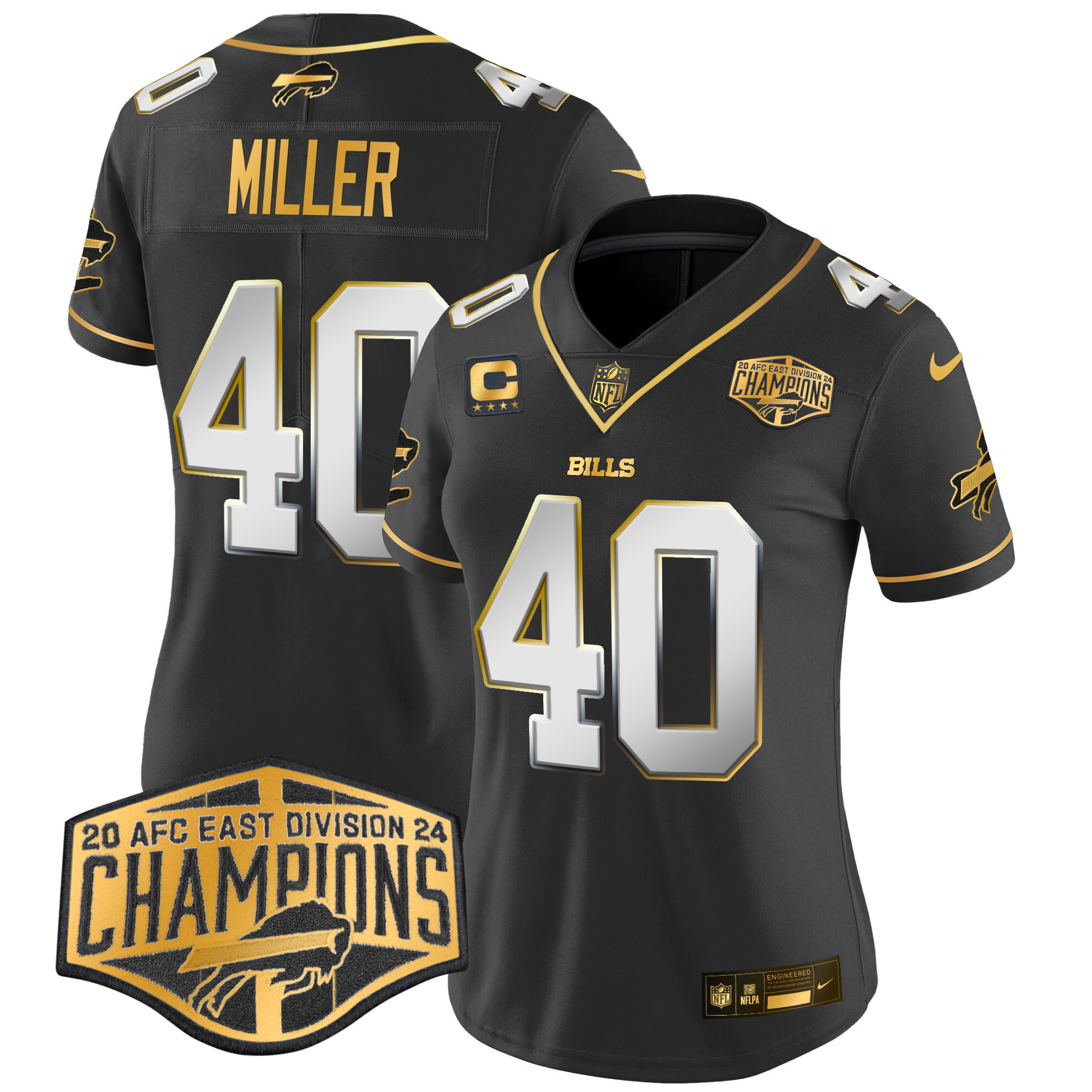 Matt Milano Women’s Buffalo Bills 2024 AFC East Division Champions Gold Vapor Limited Black Limited Jersey – All Stitched