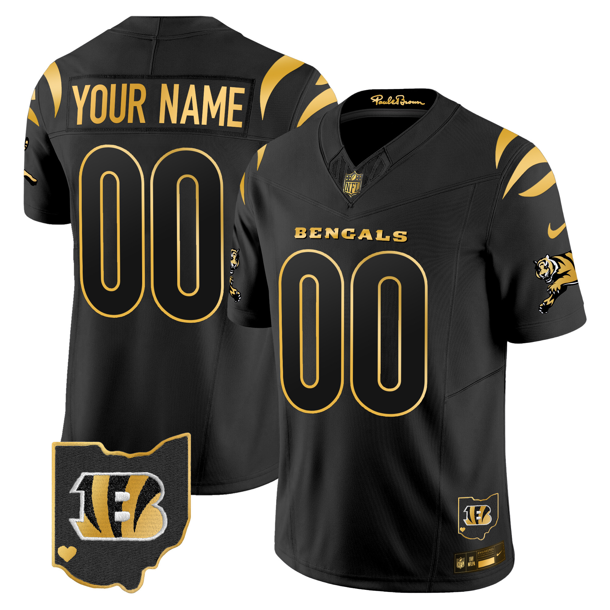 Men’s Cincinnati Bengals 2024 Gold Vapor Limited Custom Black Limited Jersey – All Stitched