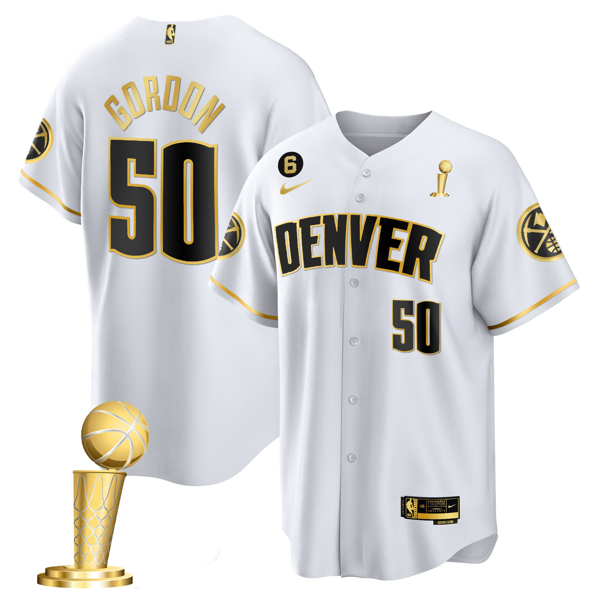 Men’s Denver Nuggets 2023 Champions Cool Base White Gold Jersey – All Stitched