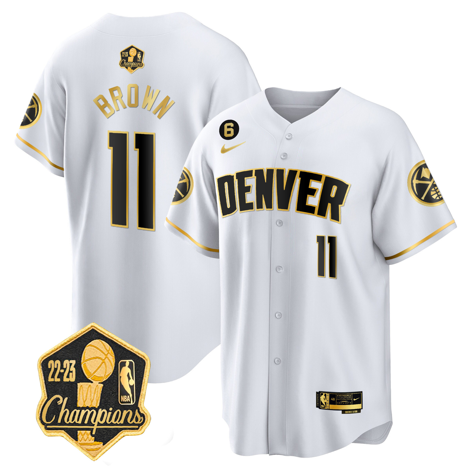 Men’s Denver Nuggets 2023 Champions Limited Patch Cool Base White Gold Jersey – All Stitched