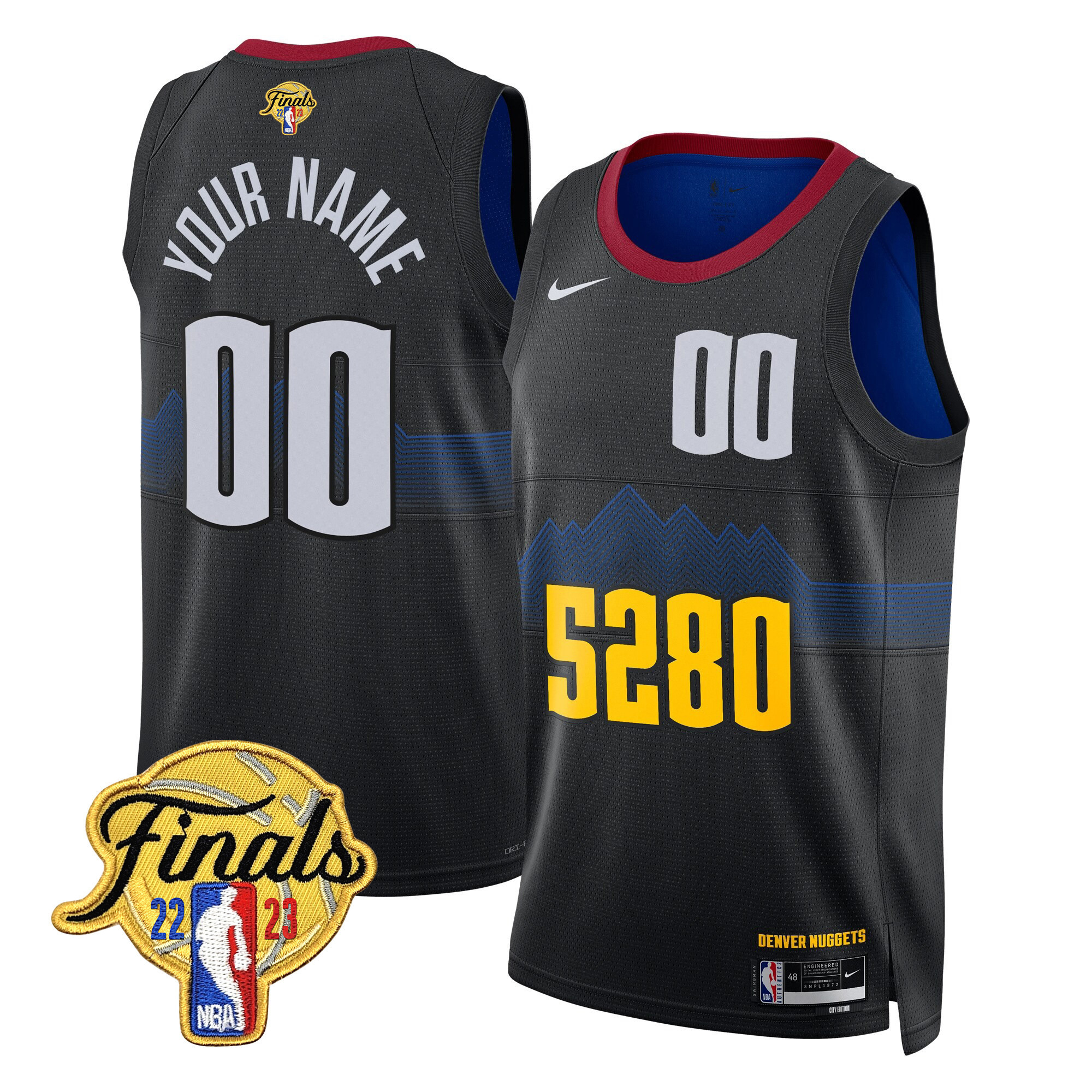 Men’s Denver Nuggets 2023 Finals Patch Collection Custom Black Gold Jersey V2 – All Stitched
