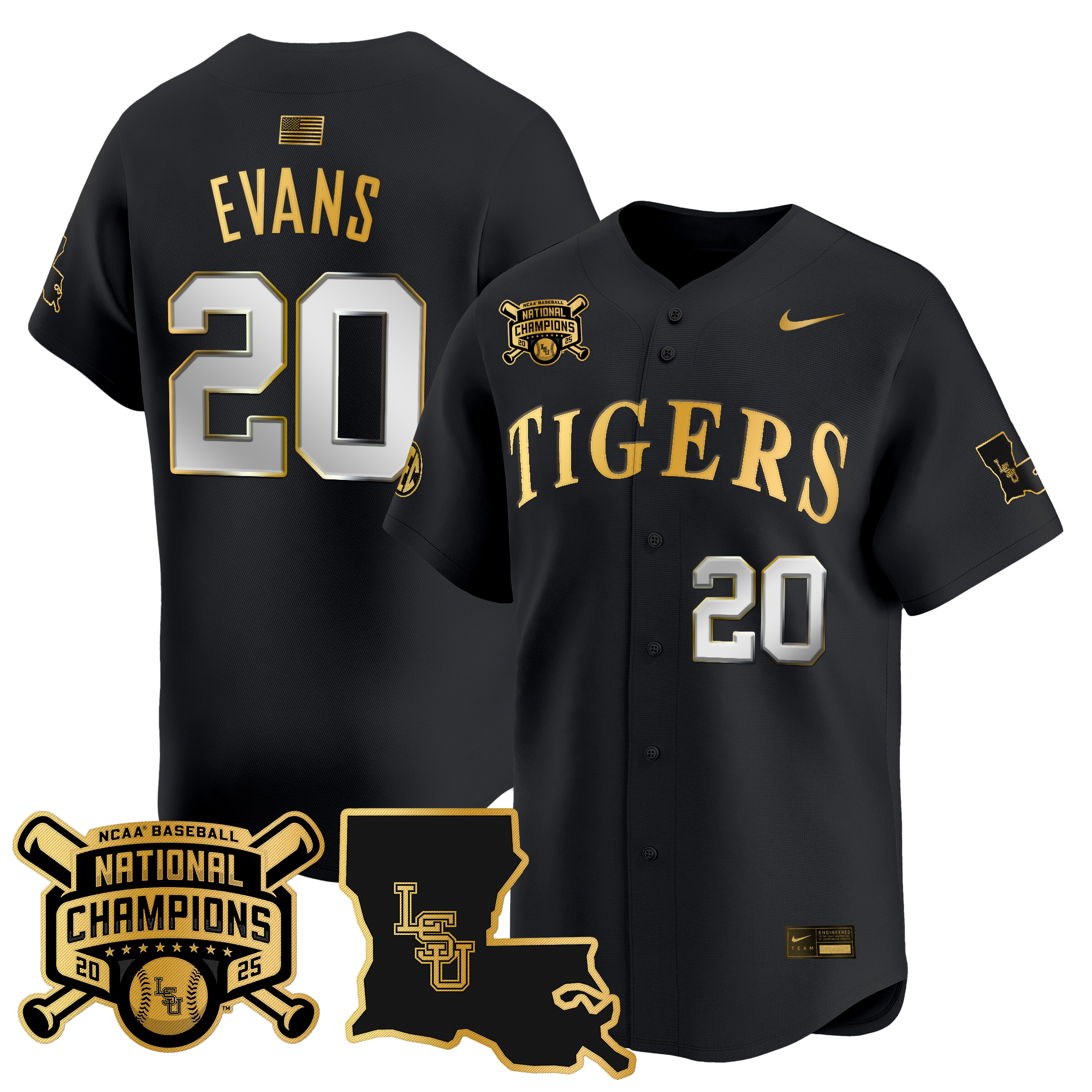 Men’s LSU Tigers 2025 College World Series Champions Gold Vapor Premier Limited Black Gold Jersey – All Stitched
