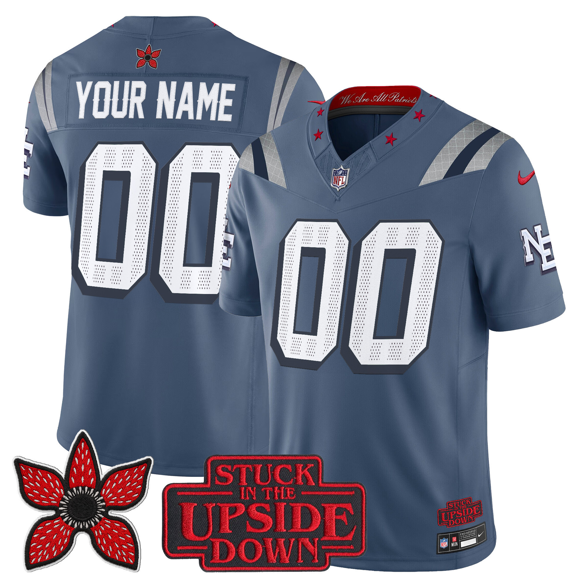 Men’s New England Patriots ‘Stranger Things Edition’ Vapor Limited Custom Navy Alternate Jersey V2 – All Stitched