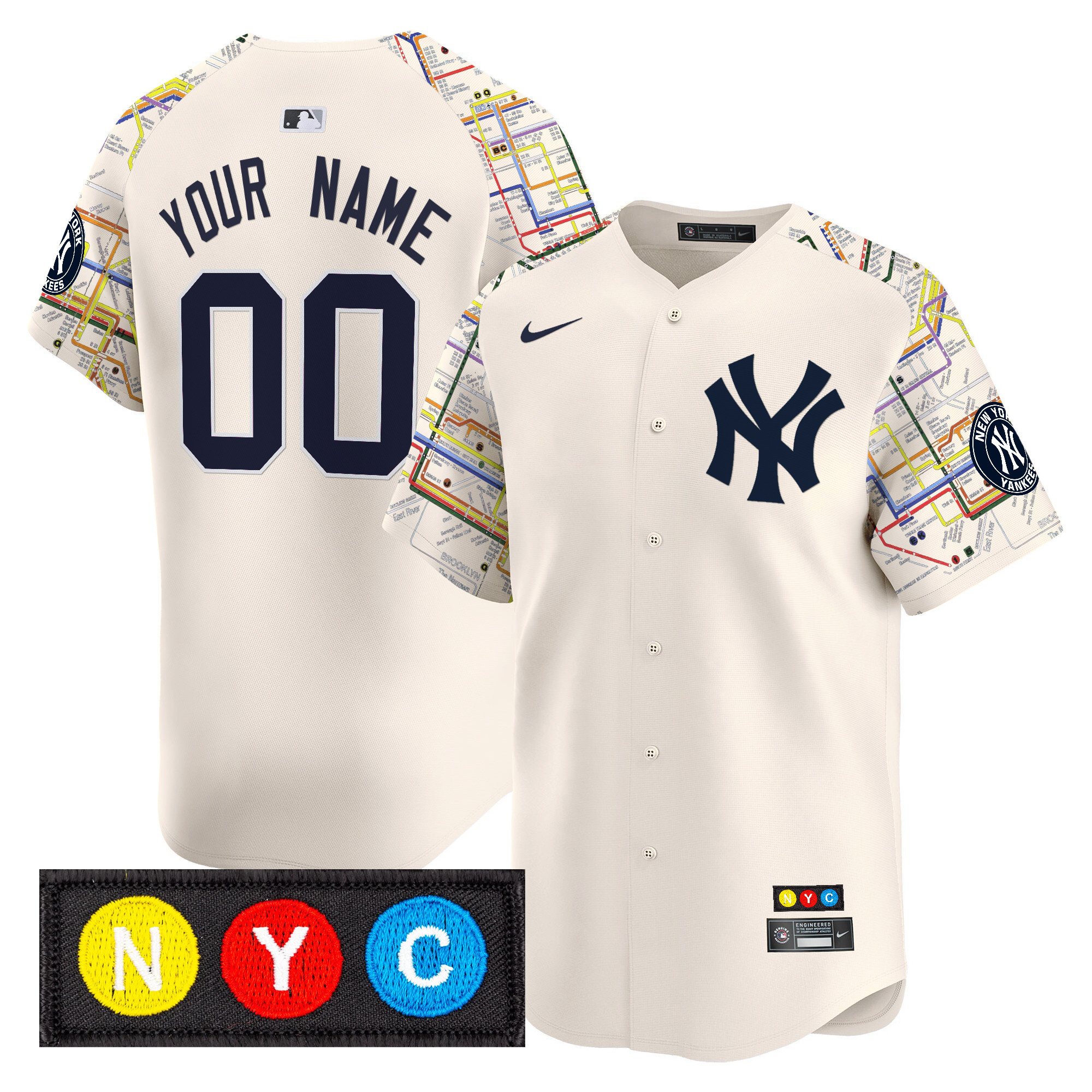 Men’s New York Yankees Subway Style Vapor Premier Limited Custom Cream Jersey – Stitched
