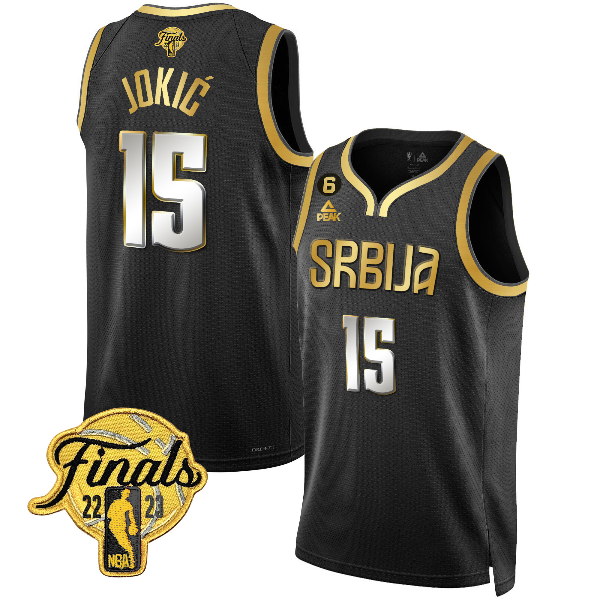 Men’s Nikola Jokic Denver Nuggets Serbia Finals Patch Gold Black Gold Jersey – All Stitched