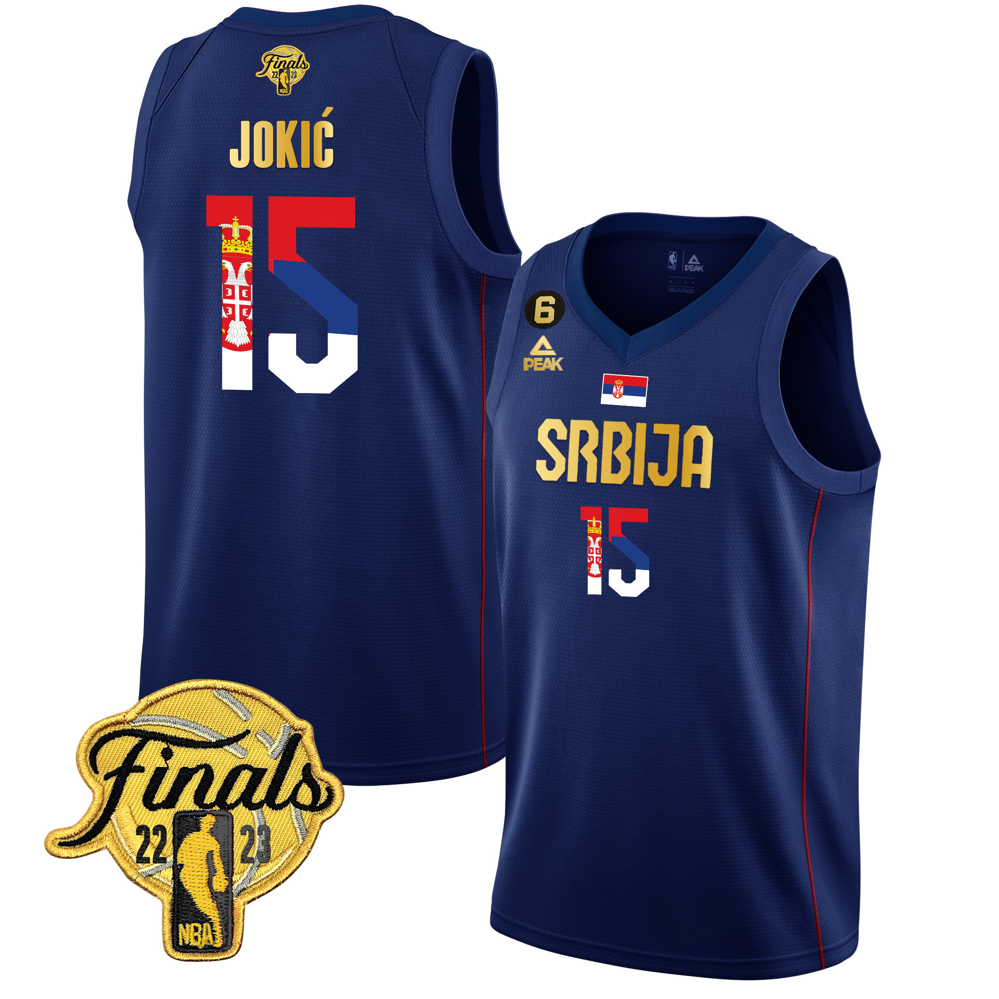 Men’s Nikola Jokic Denver Nuggets Serbia Finals Patch Gold Red Jersey – All Stitched
