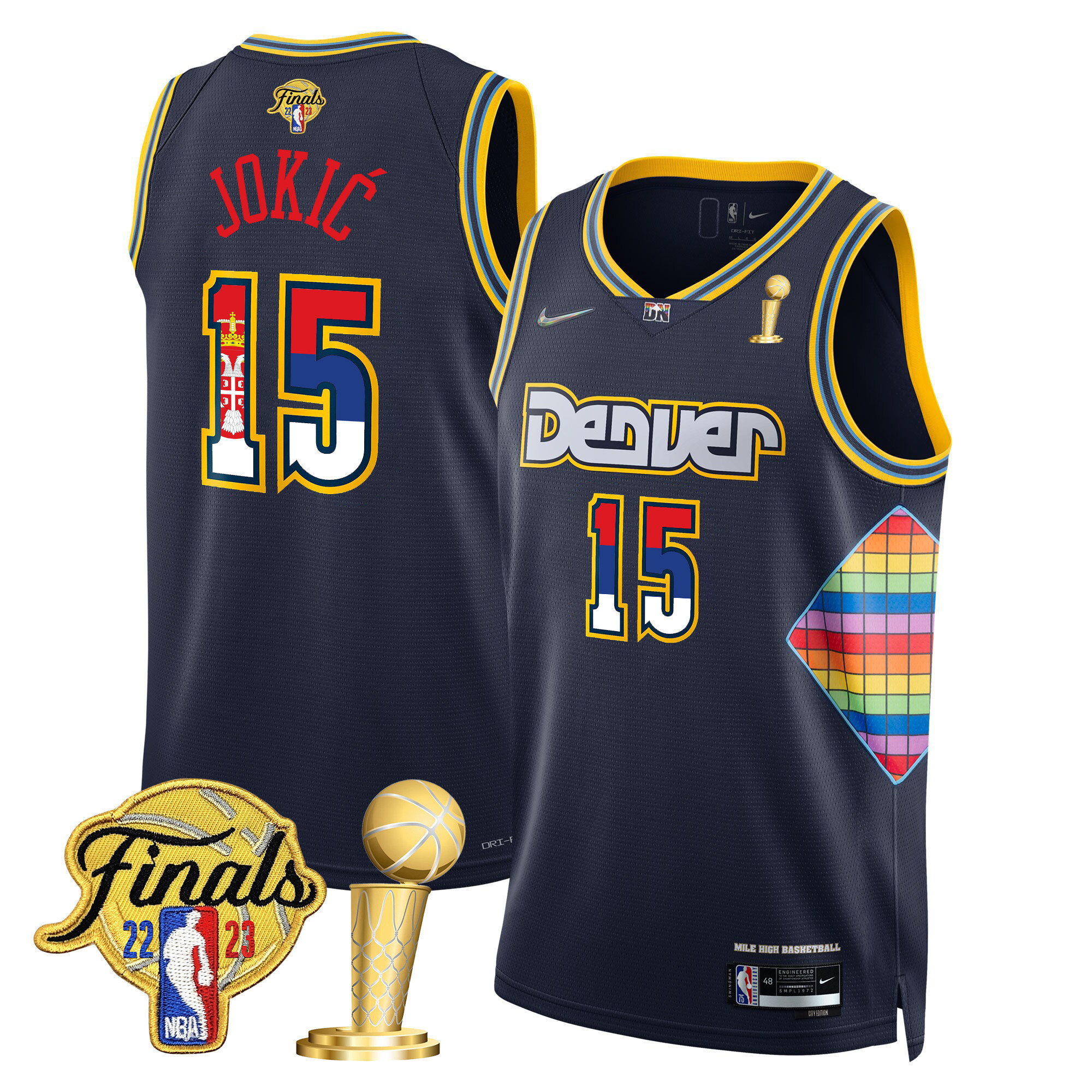 Men’s Nikola Jokic Denver Nuggets Serbia Flag Finals & Champions City White Jersey – All Stitched