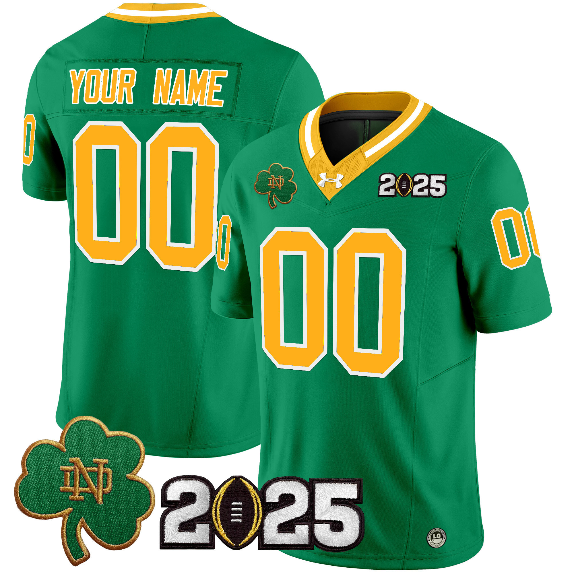 Men’s Notre Dame Fighting Irish 2025 CFP Final Patch Vapor Limited Custom Green Alternate Jersey – All Stitched