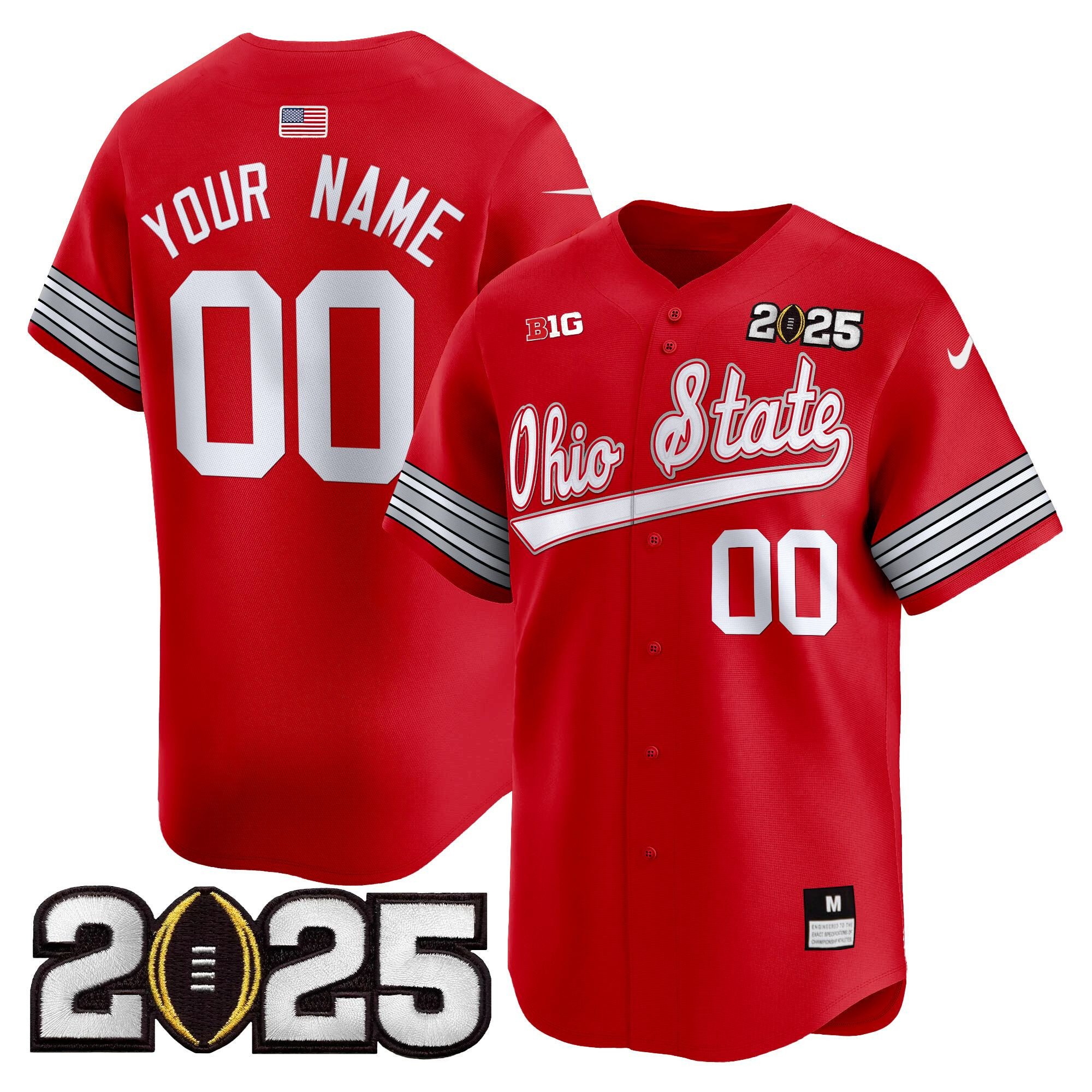Men’s Ohio State Buckeyes ‘Heritage Stripe’ 2025 CFP Final Patch Vapor Baseball Custom White Jersey V2 – All Stitched