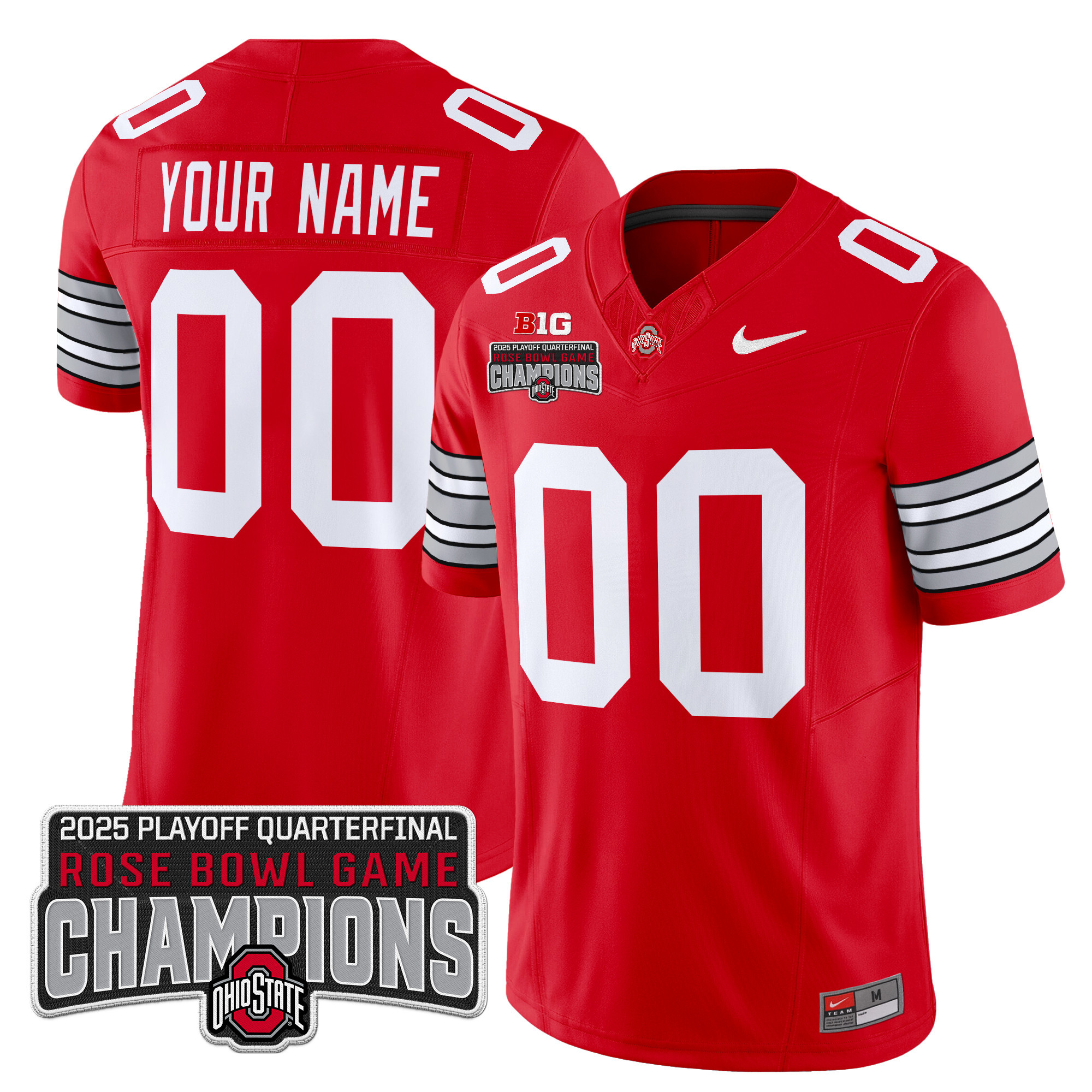 Men’s Ohio State Buckeyes ‘Heritage Stripe’ 2025 Playoff Rose Bowl Champions Patch Vapor Limited Custom Gray Jersey – All Stitched