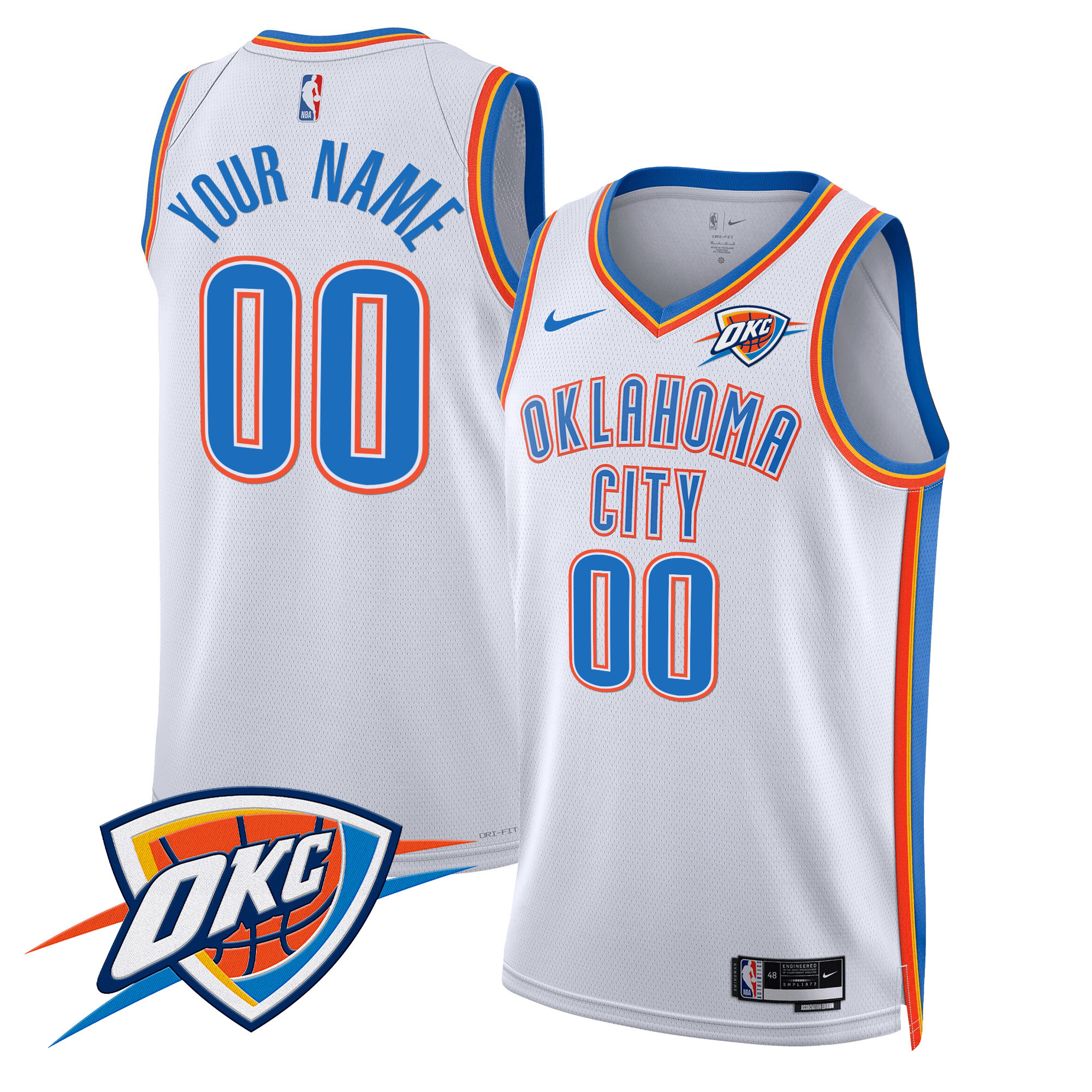 Men’s Oklahoma City Thunder Swingman Custom White Gold Jersey V2 – All Stitched