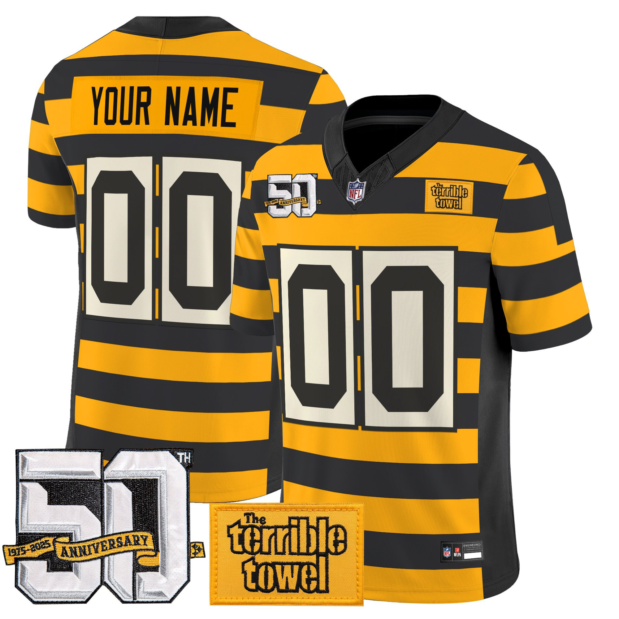 - Embroidered name, numbers and logos