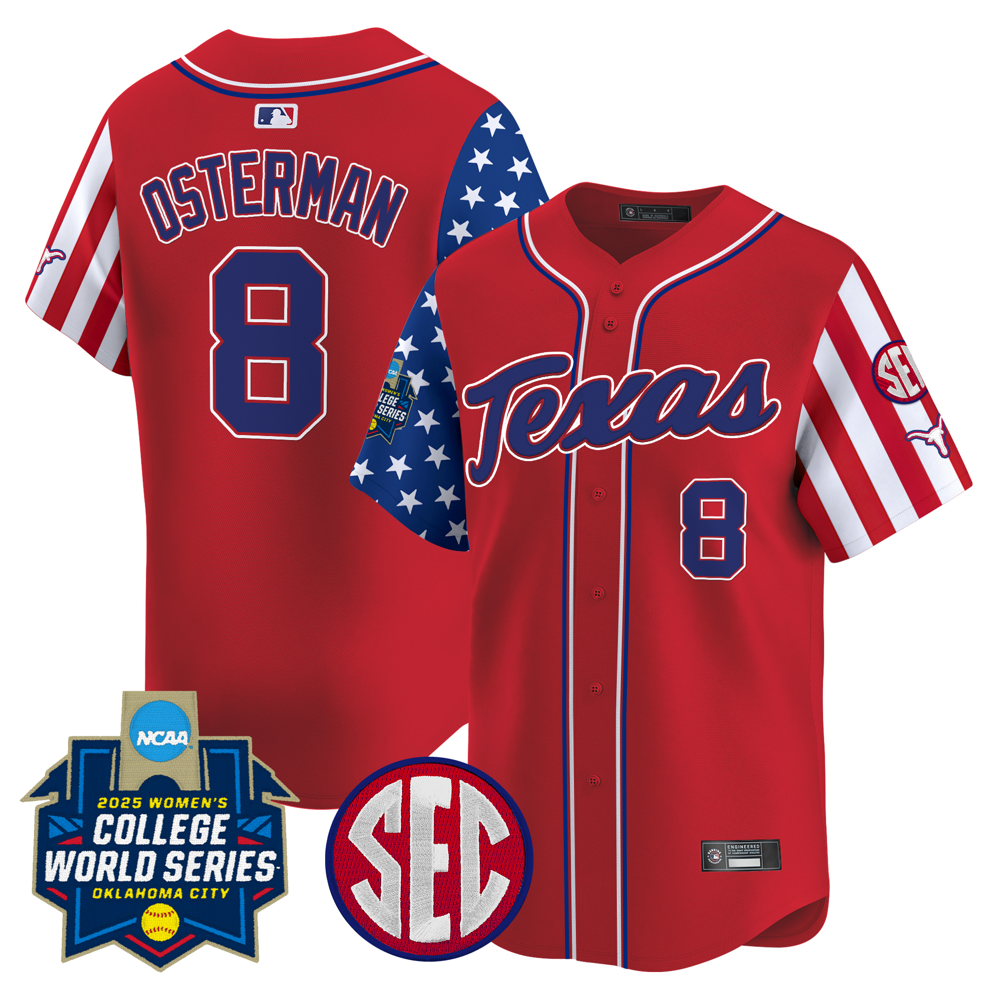 Mia Scott Men’s size – Texas Longhorns Softball 2025 Independence Day Vapor Premier Limited Red Jersey – All Stitched