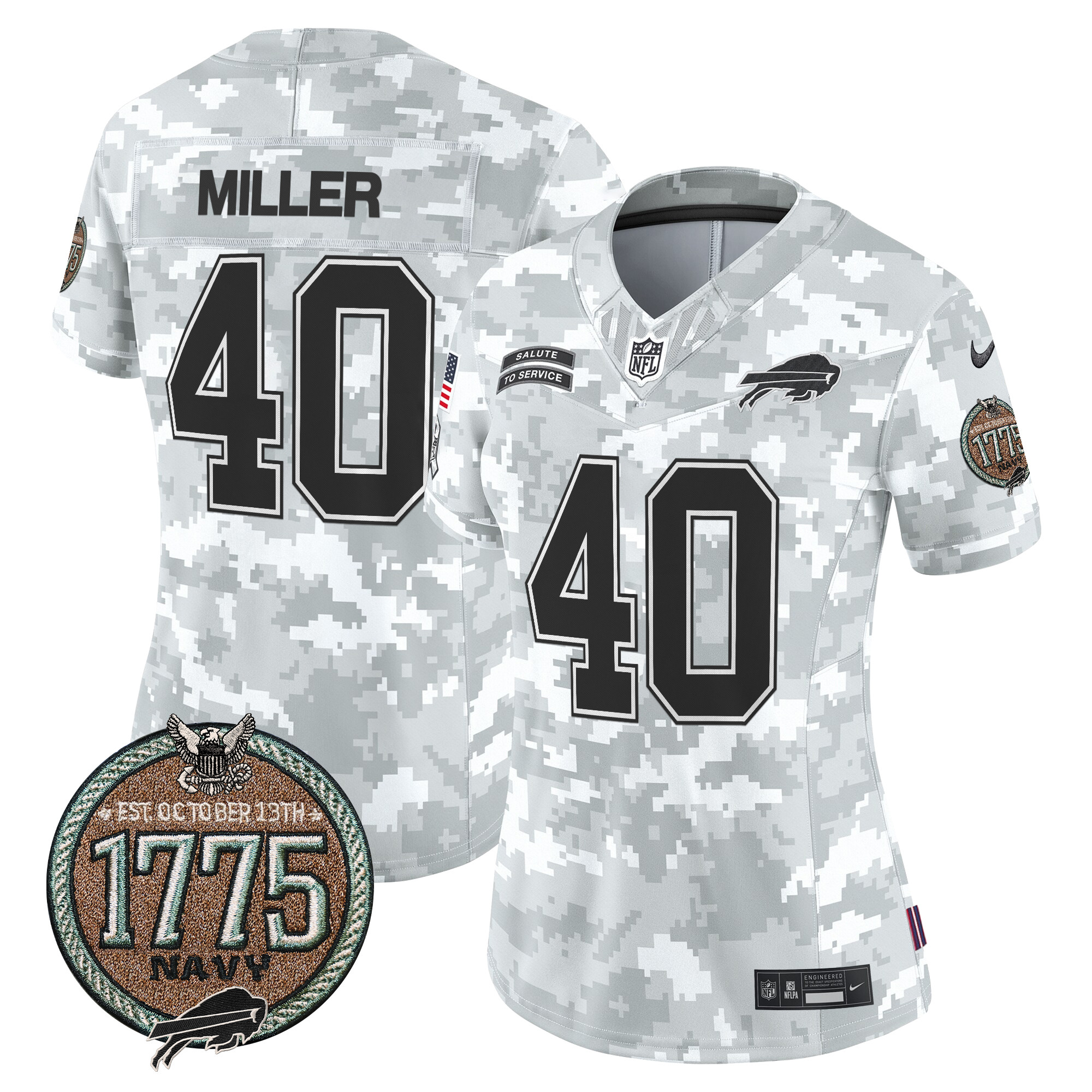 Mitchell Trubisky Women’s Buffalo Bills 2024 Salute to Service Establishment Year Patch Vapor Limited Navy Jersey – All Stitched