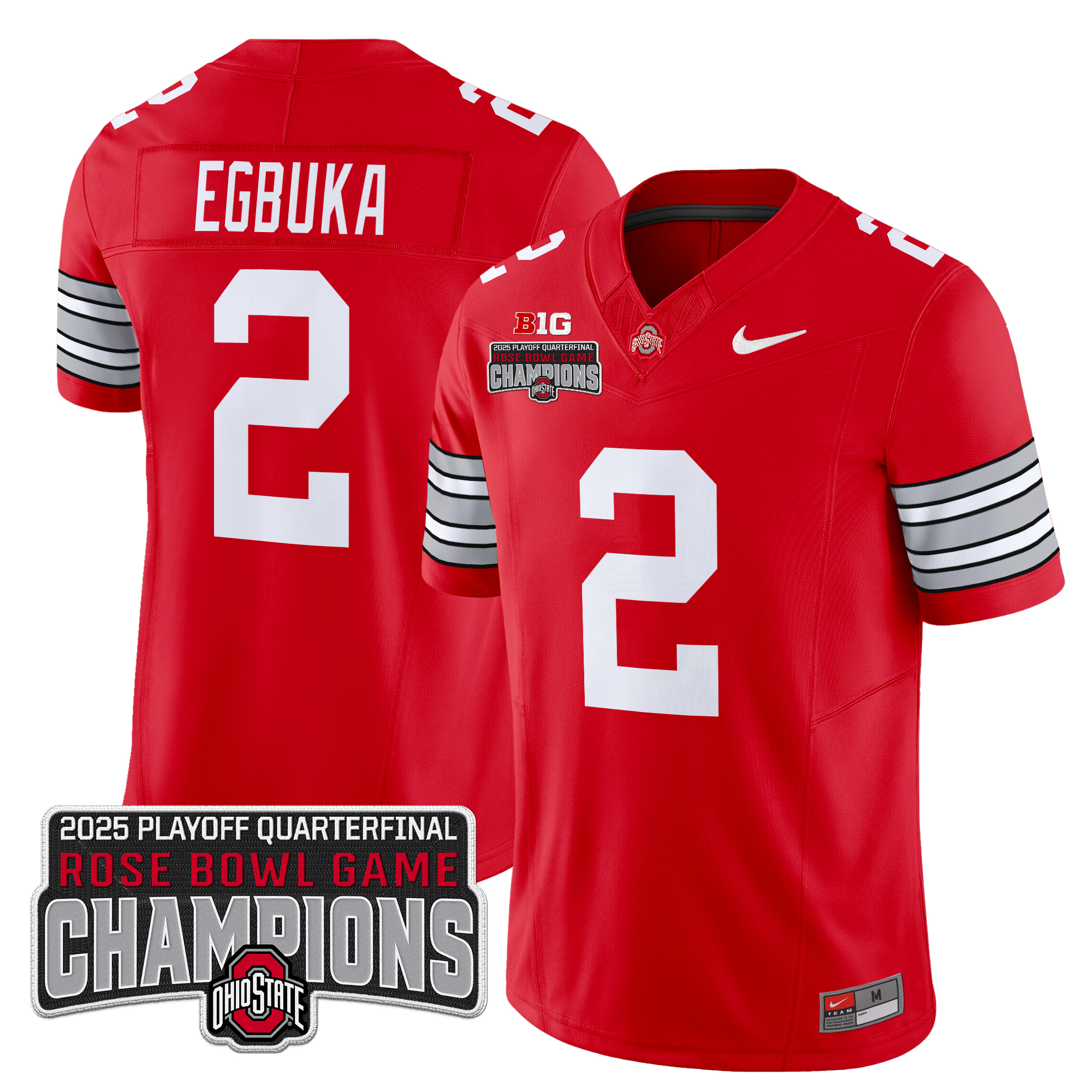 Miyan Williams Men’s Ohio State Buckeyes ‘Heritage Stripe’ 2025 Playoff Rose Bowl Champions Patch Vapor Limited Red Jersey – All Stitched
