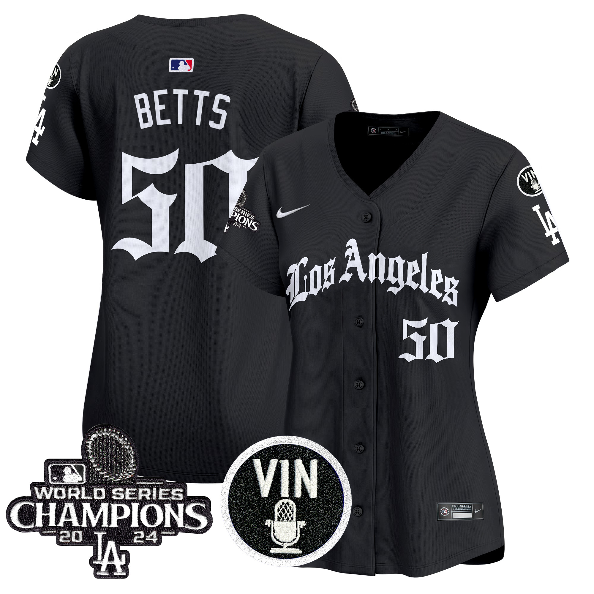 Mookie Betts Women’s Los Angeles Dodgers 2025 LA Gothic Style Vapor Premier Limited Black Jersey – All Stitched