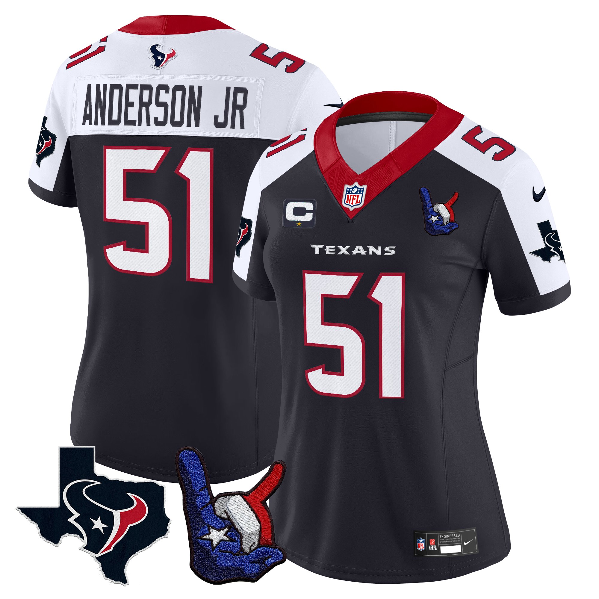 Nico Collins Women’s Houston Texans Hand Sign Throwing Up The H Vapor Navy Alternate Jersey – All Stitched