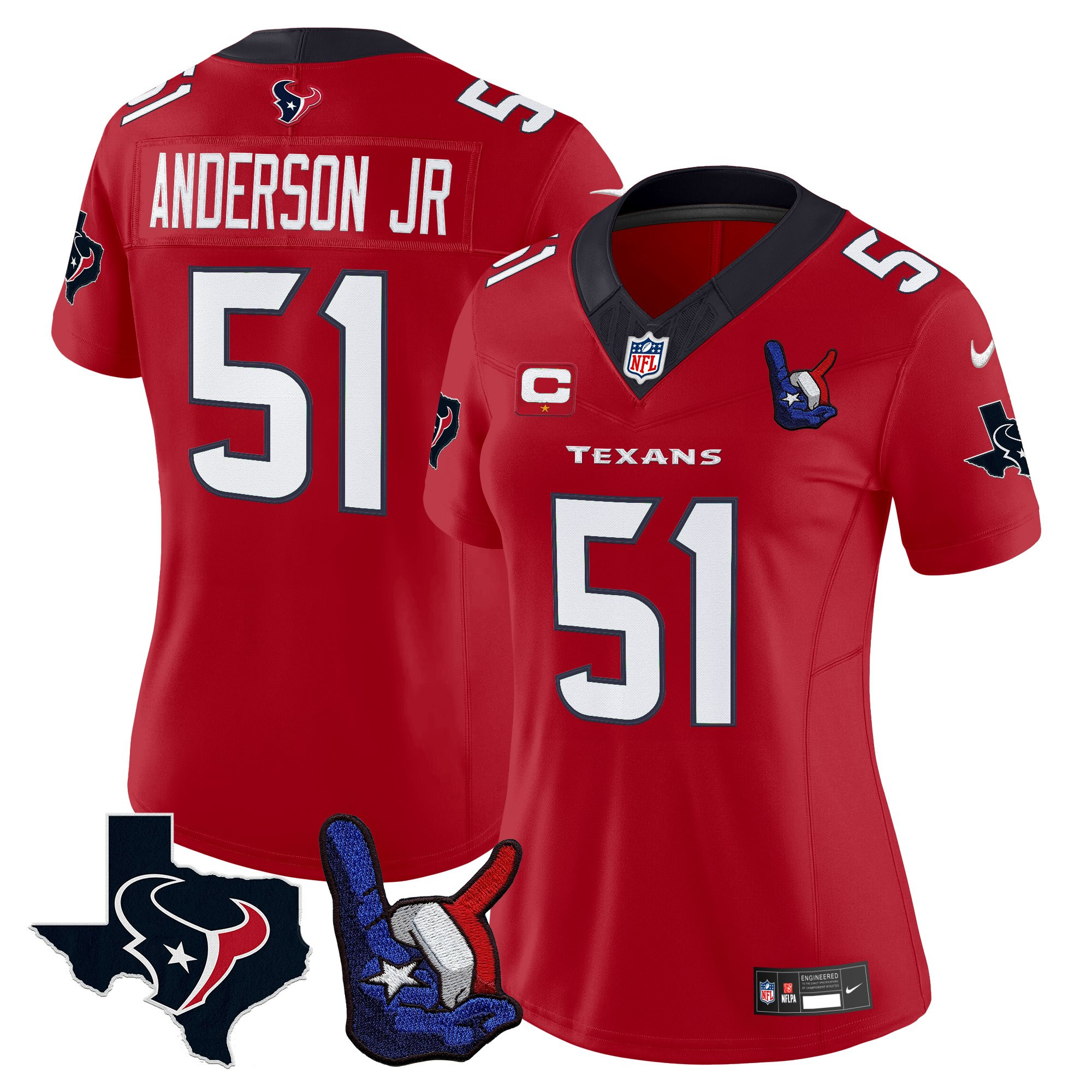 Nico Collins Women’s Houston Texans Hand Sign Throwing Up The H Vapor Red Jersey – All Stitched