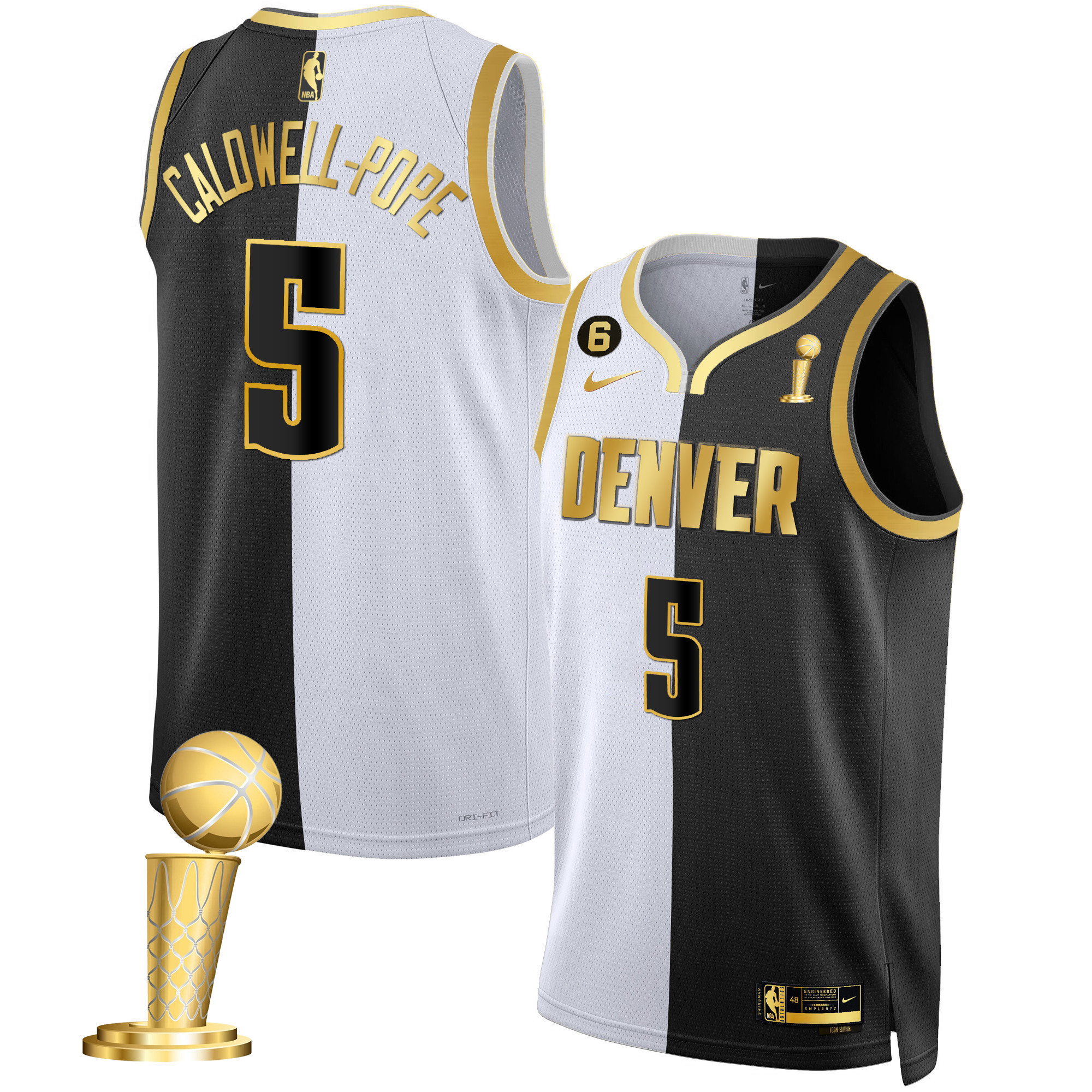Nikola Jokic Men’s Denver Nuggets 2023 Champions Black & White Gold Split Jersey – All Stitched