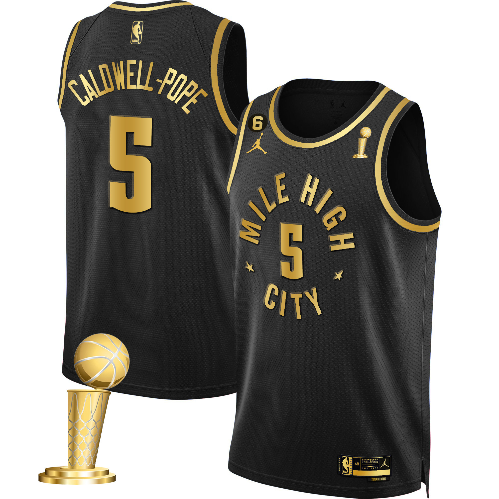 Nikola Jokic Men’s Denver Nuggets 2023 Champions Black & White Gold Statement Black Jersey – All Stitched