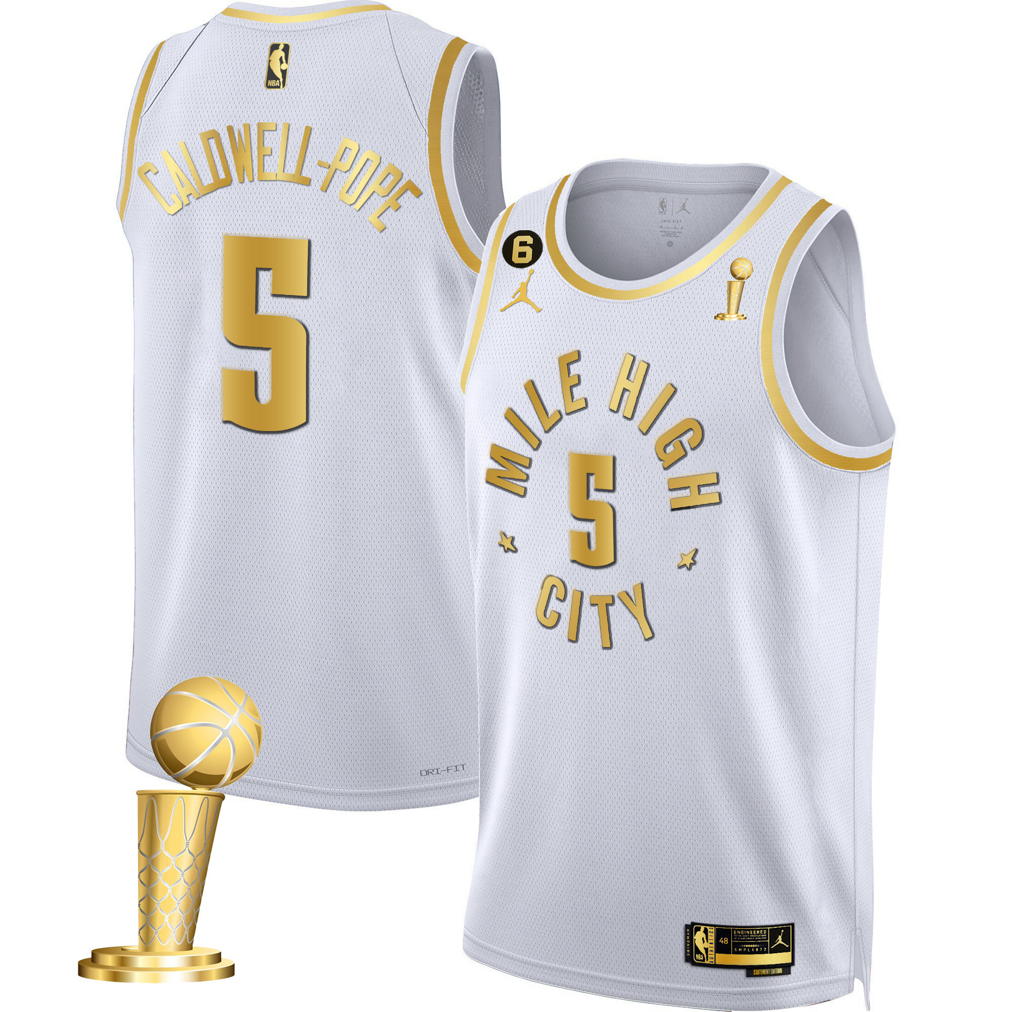 Nikola Jokic Men’s Denver Nuggets 2023 Champions Black & White Gold Statement White Jersey – All Stitched