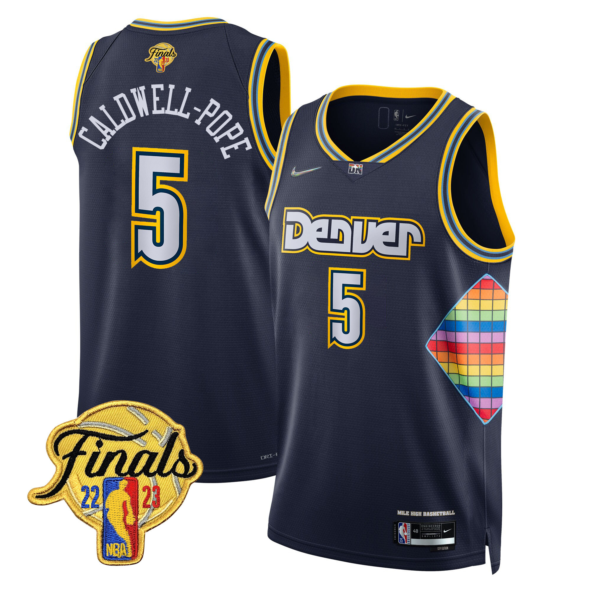 Nikola Jokic Men’s Denver Nuggets 2023 Finals Patch Collection City Navy Jersey V2 – All Stitched