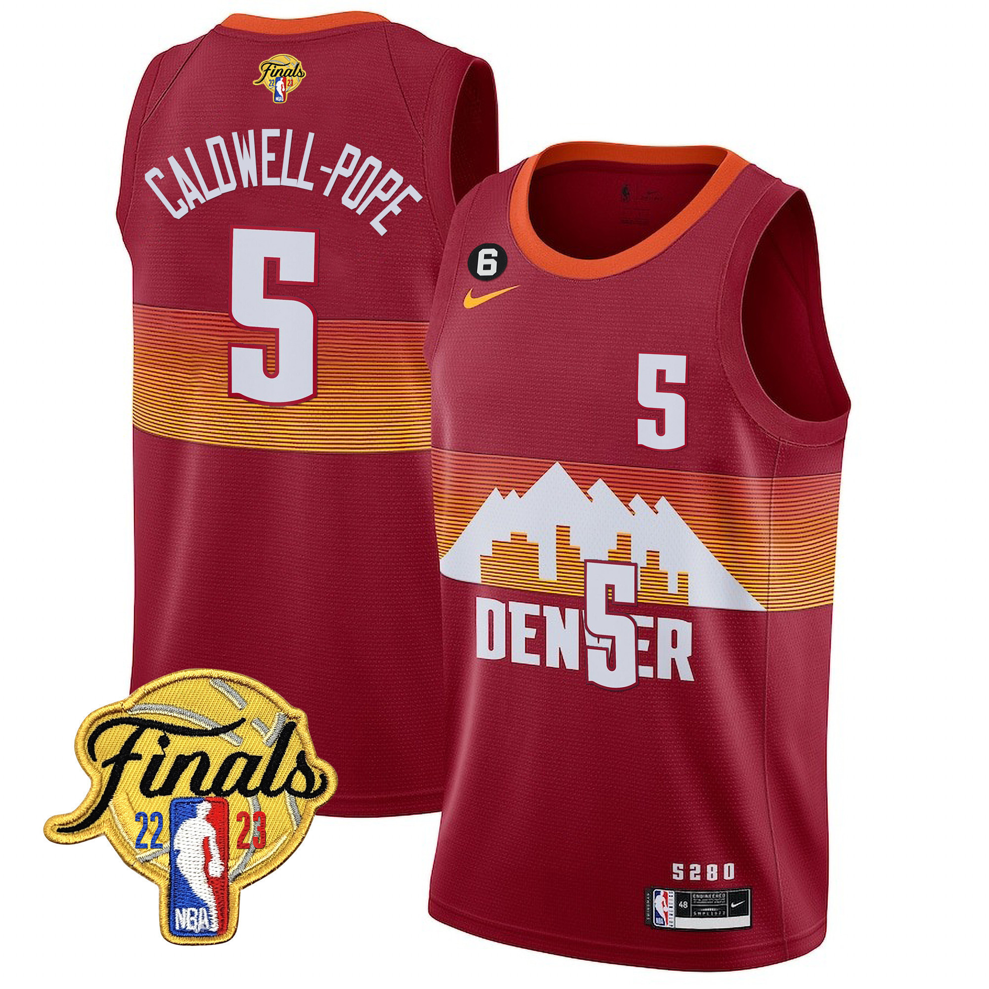 Nikola Jokic Men’s Denver Nuggets 2023 Finals Patch Collection City Red Jersey V2 – All Stitched