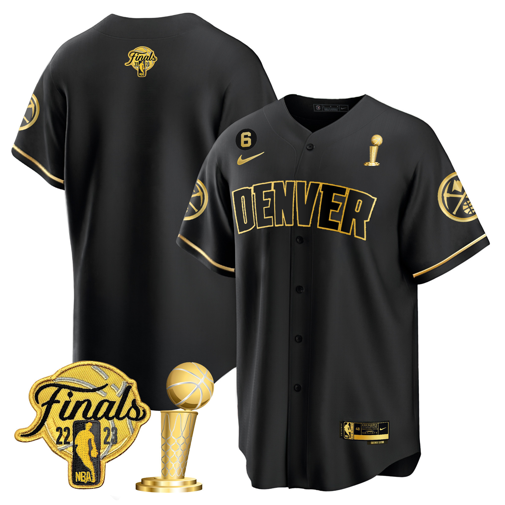 Nikola Jokic Youth’s Denver Nuggets 2023 Finals & Champions Patch Cool Base White Gold Jersey – All Stitched