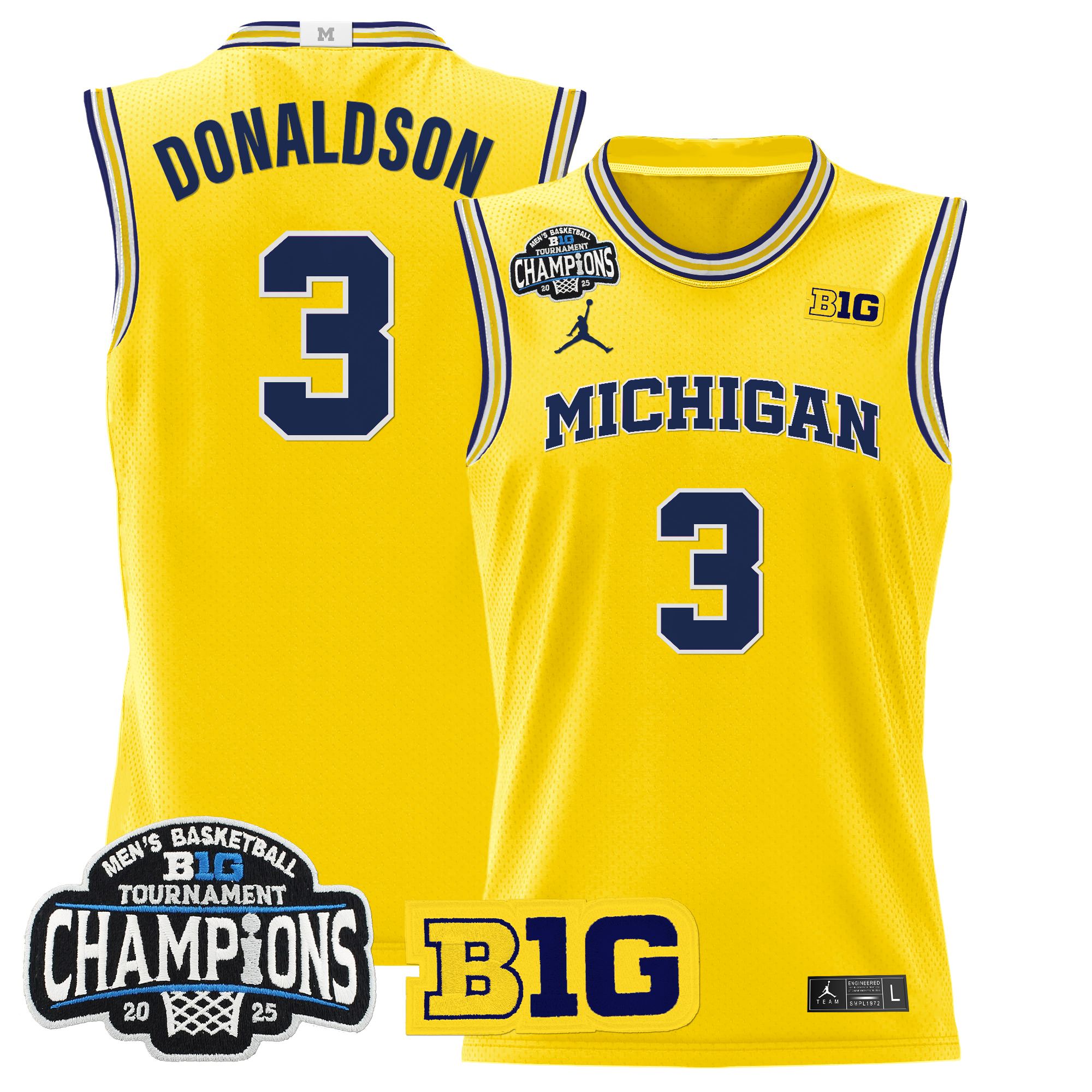 Nimari Burnett Men’s Michigan Wolverines 2025 Big Ten Conference Tournament Champions Basketball Maize Jersey – All Stitched