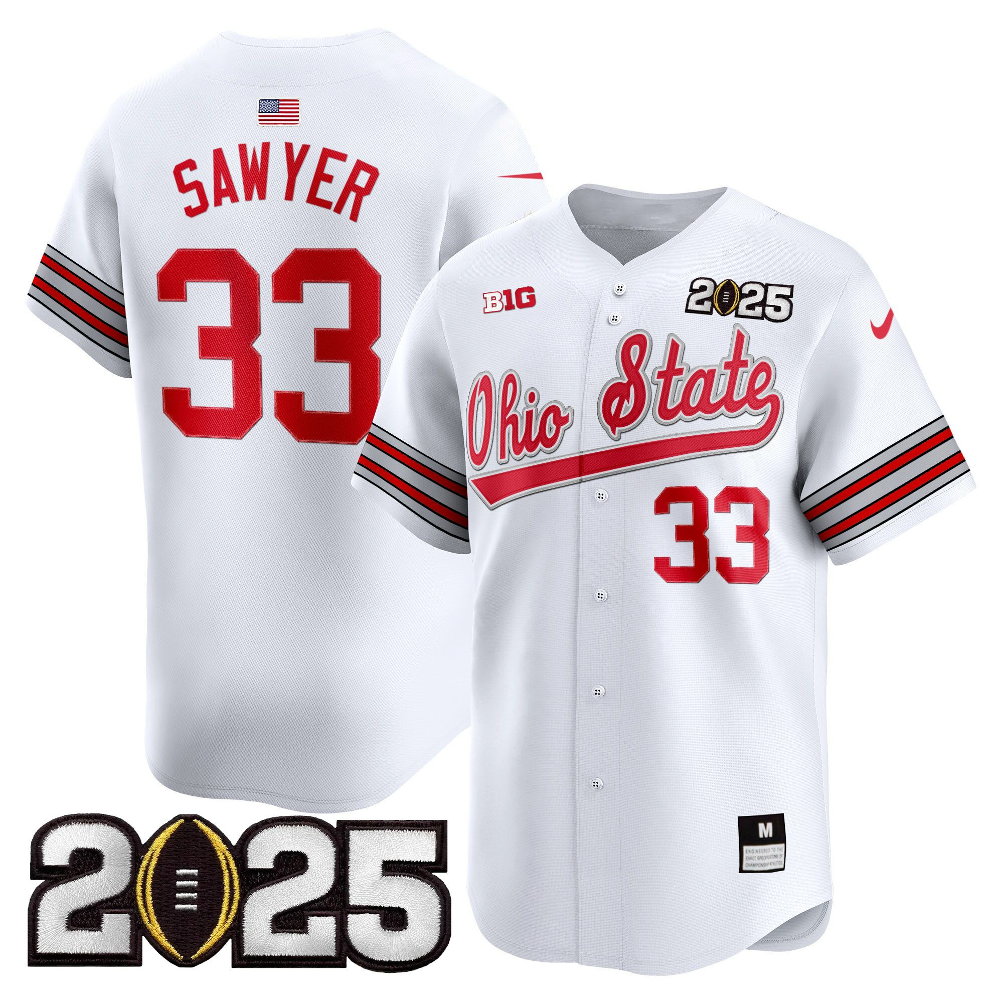 Be the first to review “OH-IO Men’s Ohio State Buckeyes ‘Heritage Stripe’ 2025 CFP Final Patch Vapor Baseball White Jersey V2 – All Stitched”