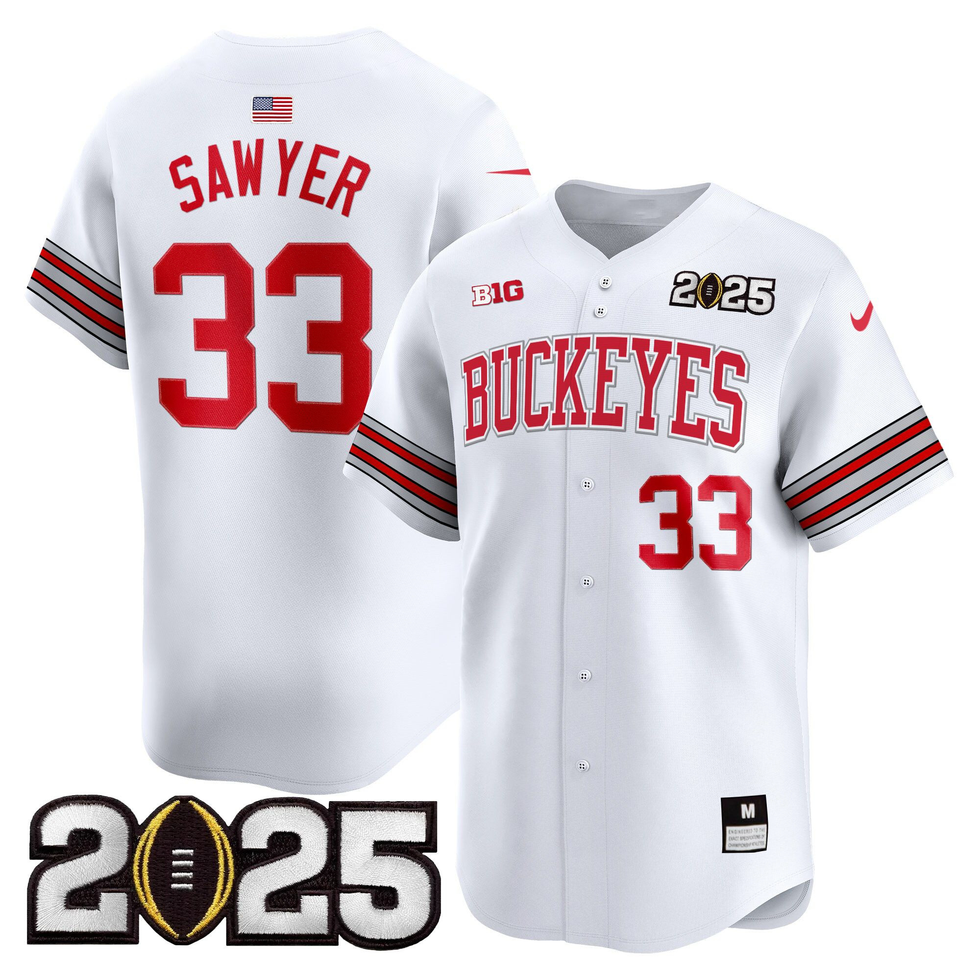 Be the first to review “OH-IO Men’s Ohio State Buckeyes ‘Heritage Stripe’ 2025 CFP Final Patch Vapor Baseball White Jersey – All Stitched”
