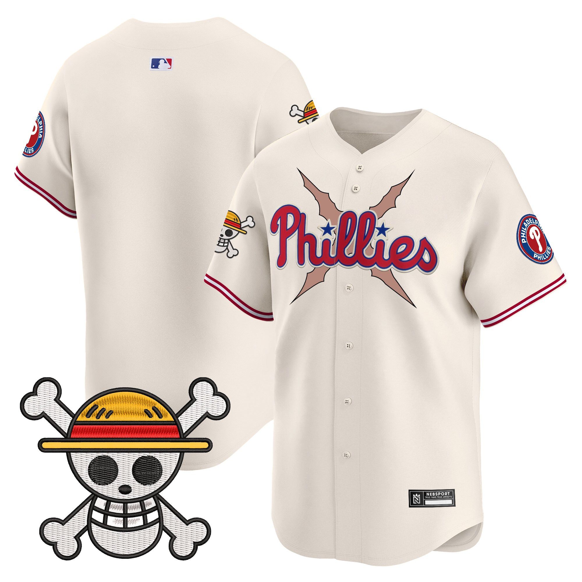 Phanatic Men’s Philadelphia Phillies x One Piece 2025 Vapor Premier Limited Cream Jersey – All Stitched