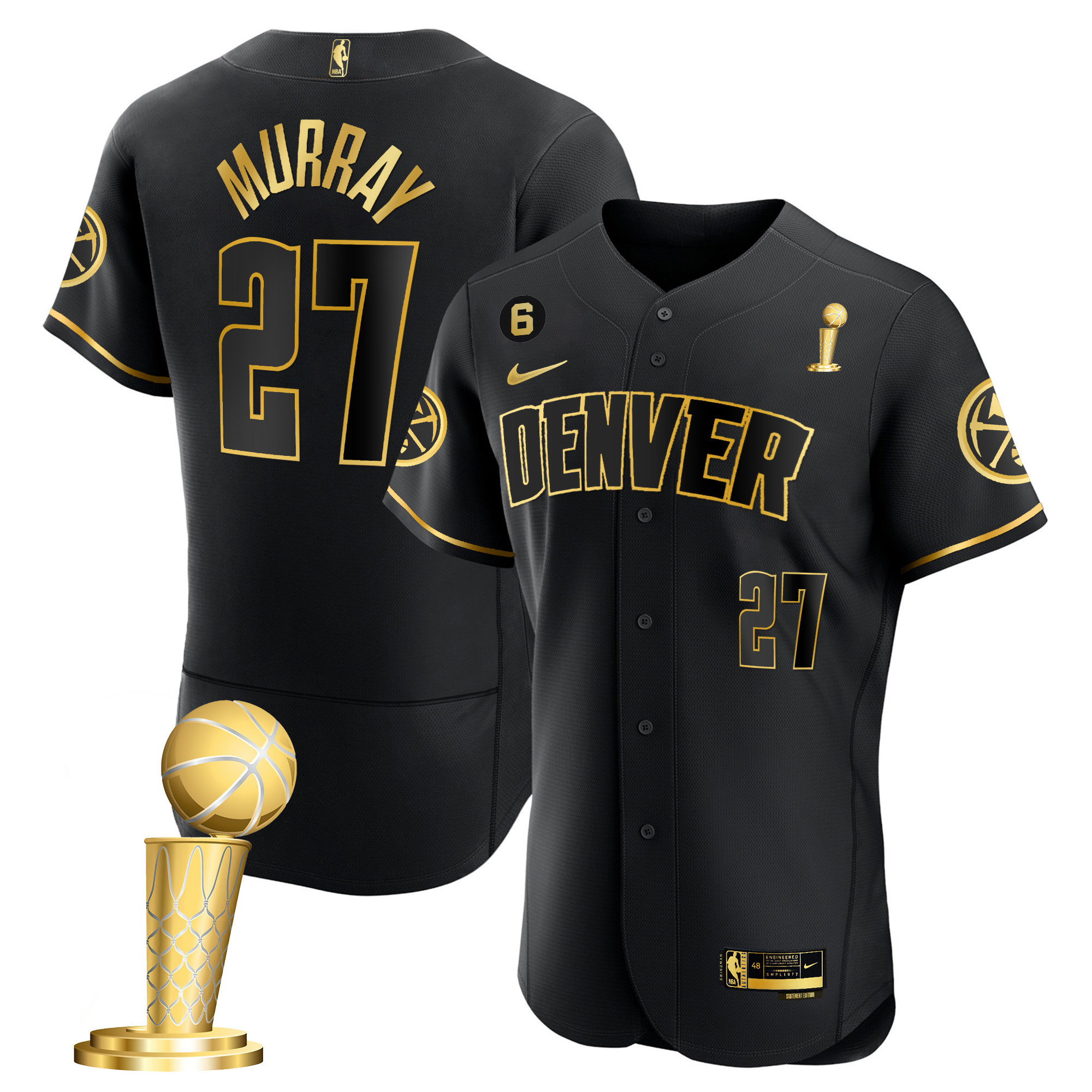Porter Jr. Youth’s Denver Nuggets 2023 Champions Flex Base Black Gold Jersey – All Stitched