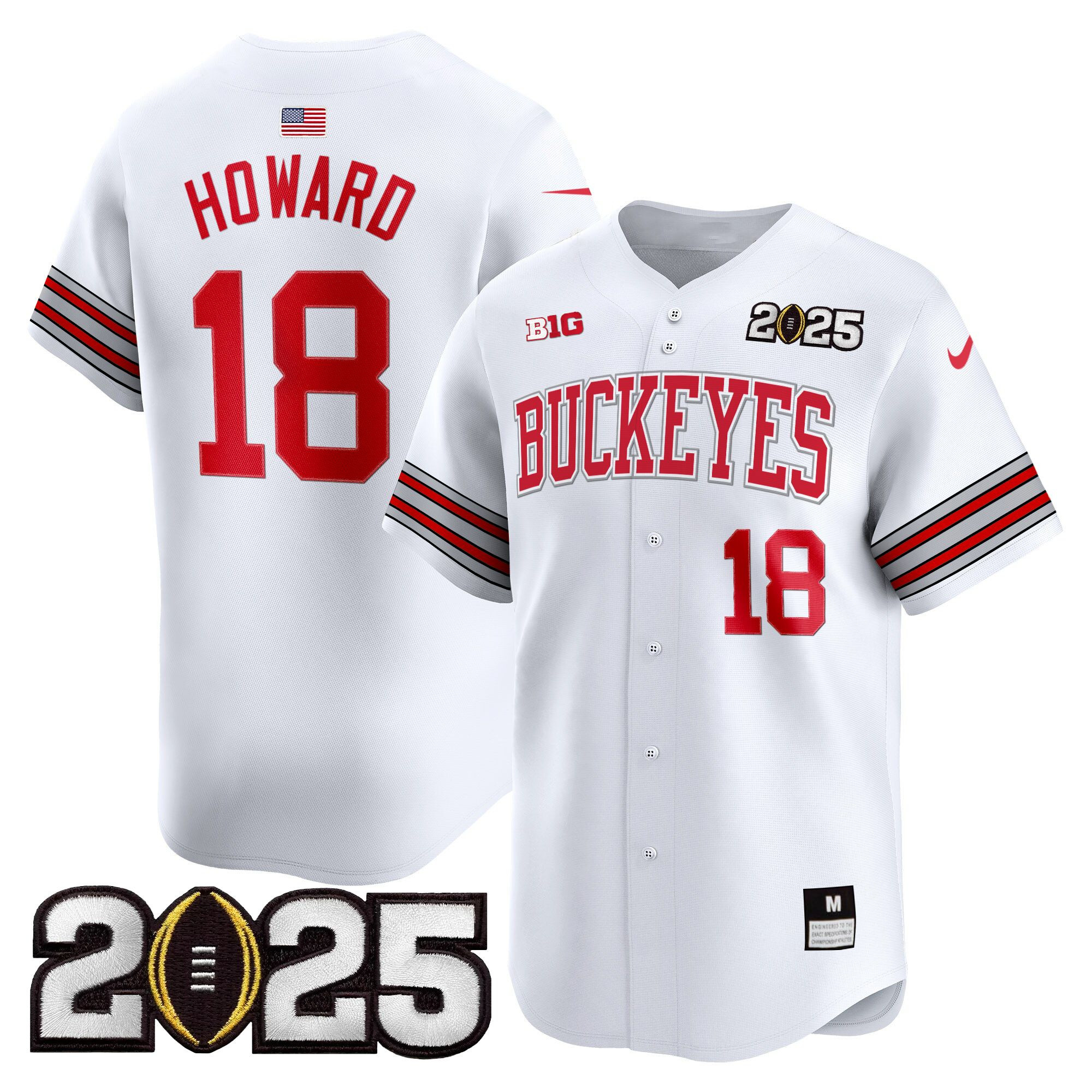 Quinshon Judkins Men’s Ohio State Buckeyes ‘Heritage Stripe’ 2025 CFP Final Patch Vapor Baseball White Jersey – All Stitched