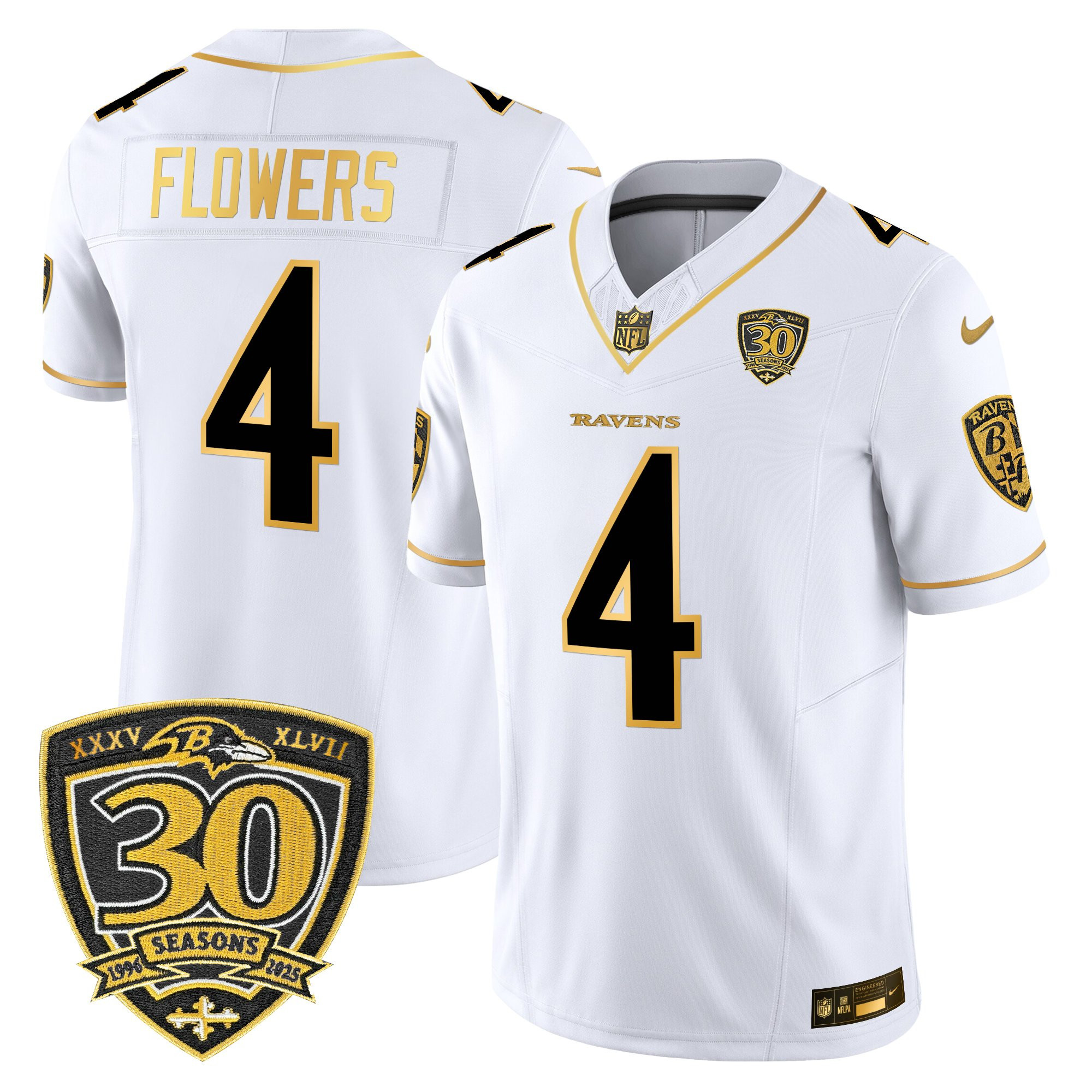 Ray Lewis Men’s Baltimore Ravens 2025 Gold Vapor Limited White Gold Jersey – 30th Anniversary Patch – All Stitched