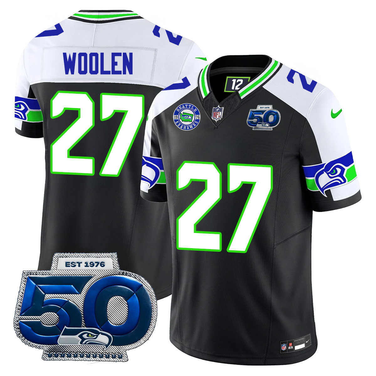 Riq Woolen – 27 Men’s Seattle Seahawks 50th Season Vapor Limited Green Jersey – All Stitched