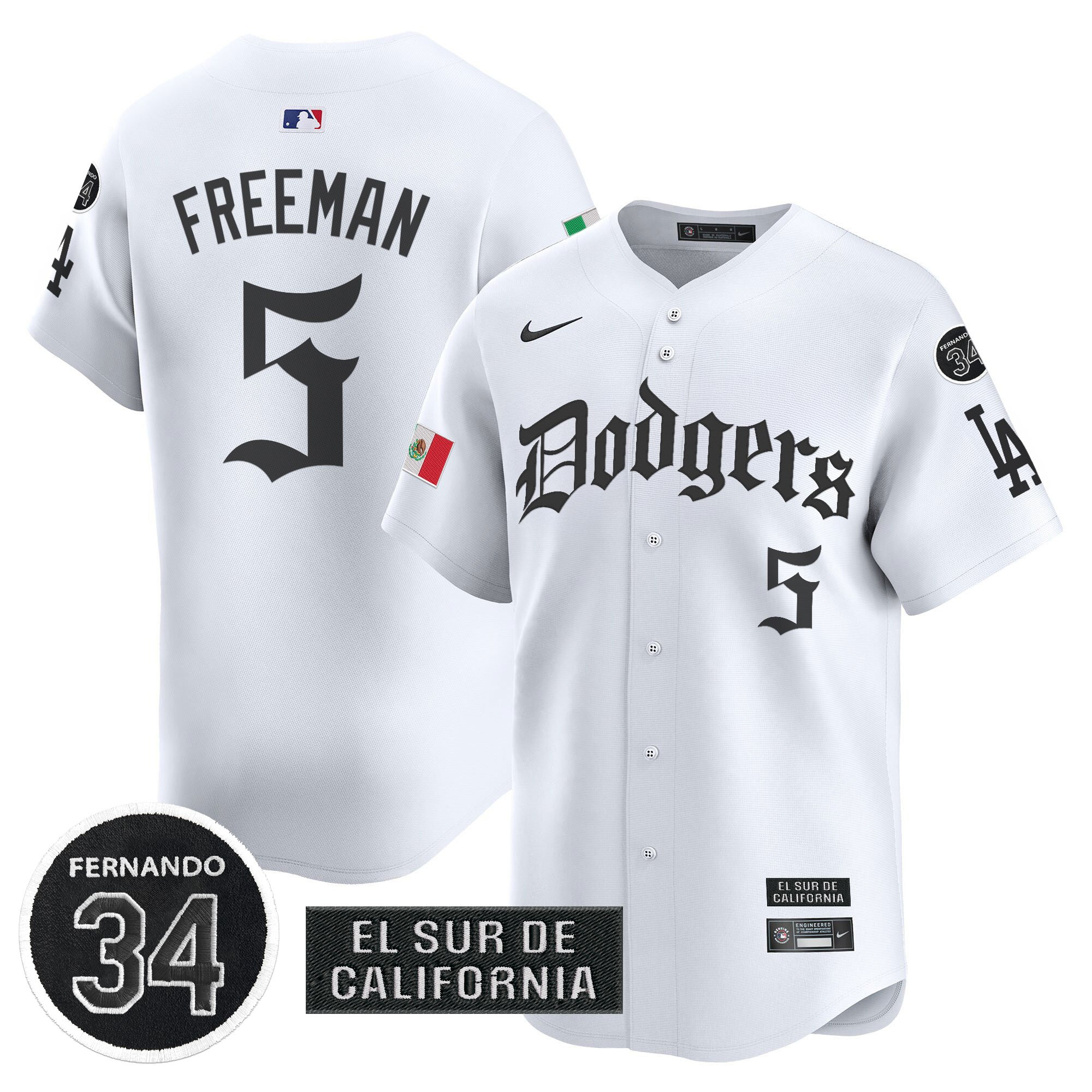 Roki Sasaki Men’s Los Angeles Dodgers Mexico 2025 LA Gothic Style Vapor Premier Limited White Jersey V2 – All Stitched