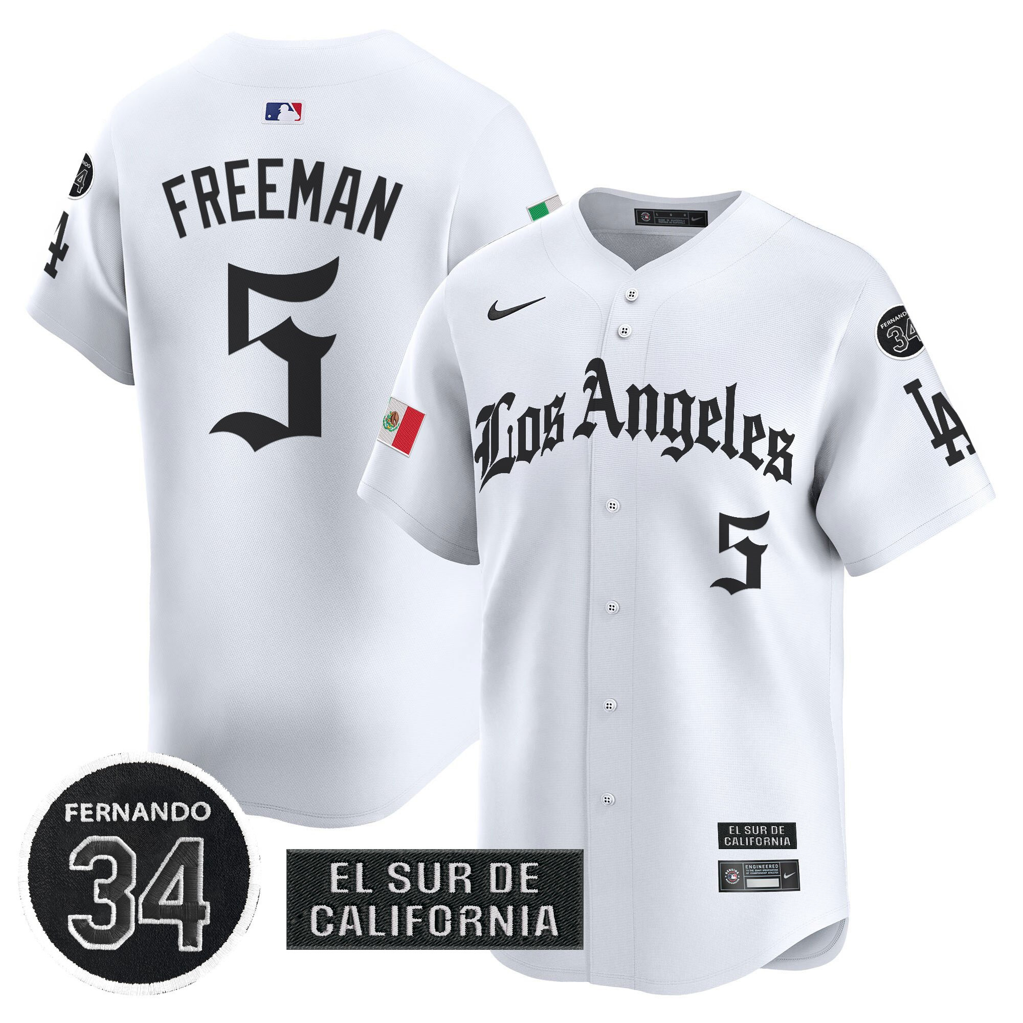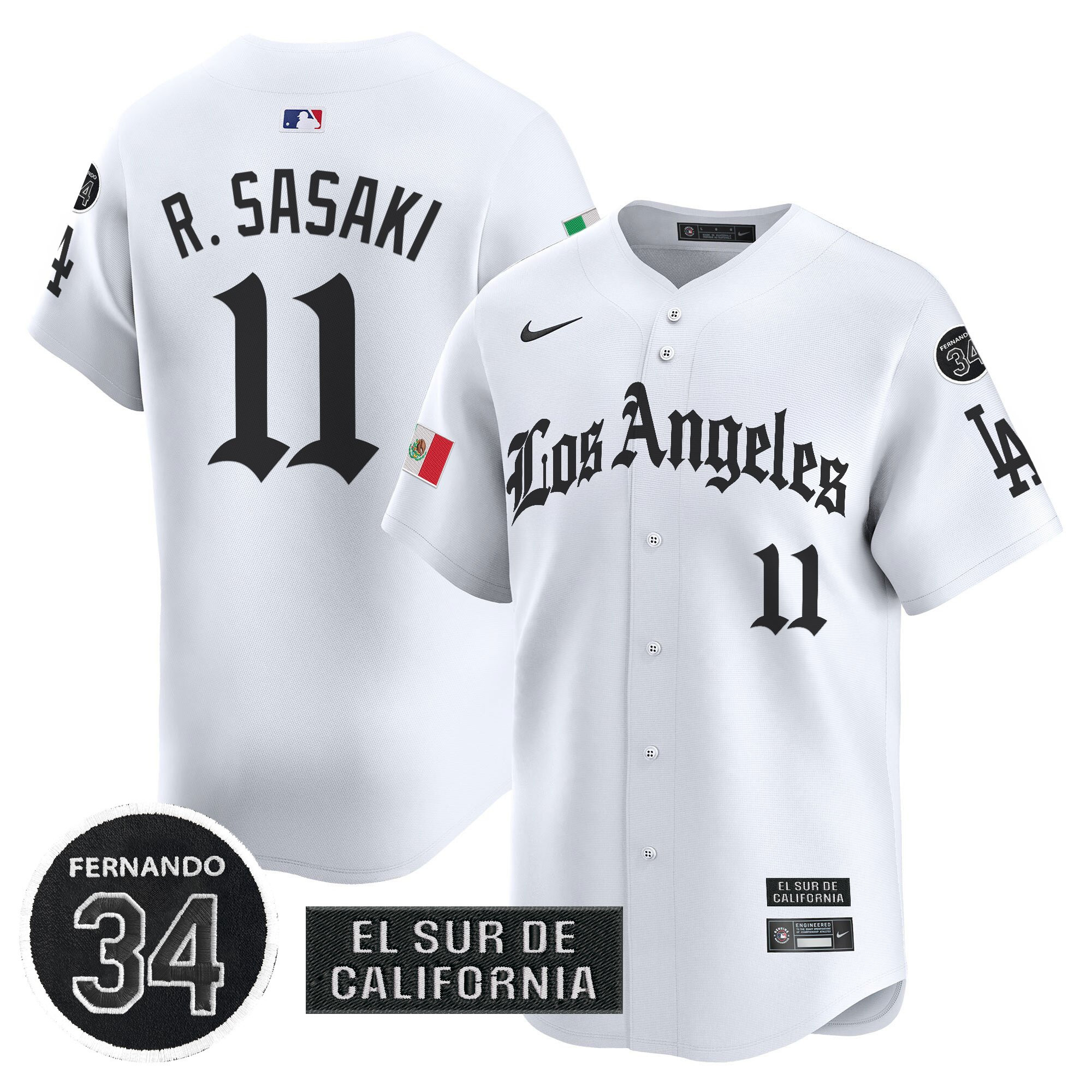 Roki Sasaki Men’s Los Angeles Dodgers Mexico 2025 LA Gothic Style Vapor Premier Limited White Jersey – All Stitched