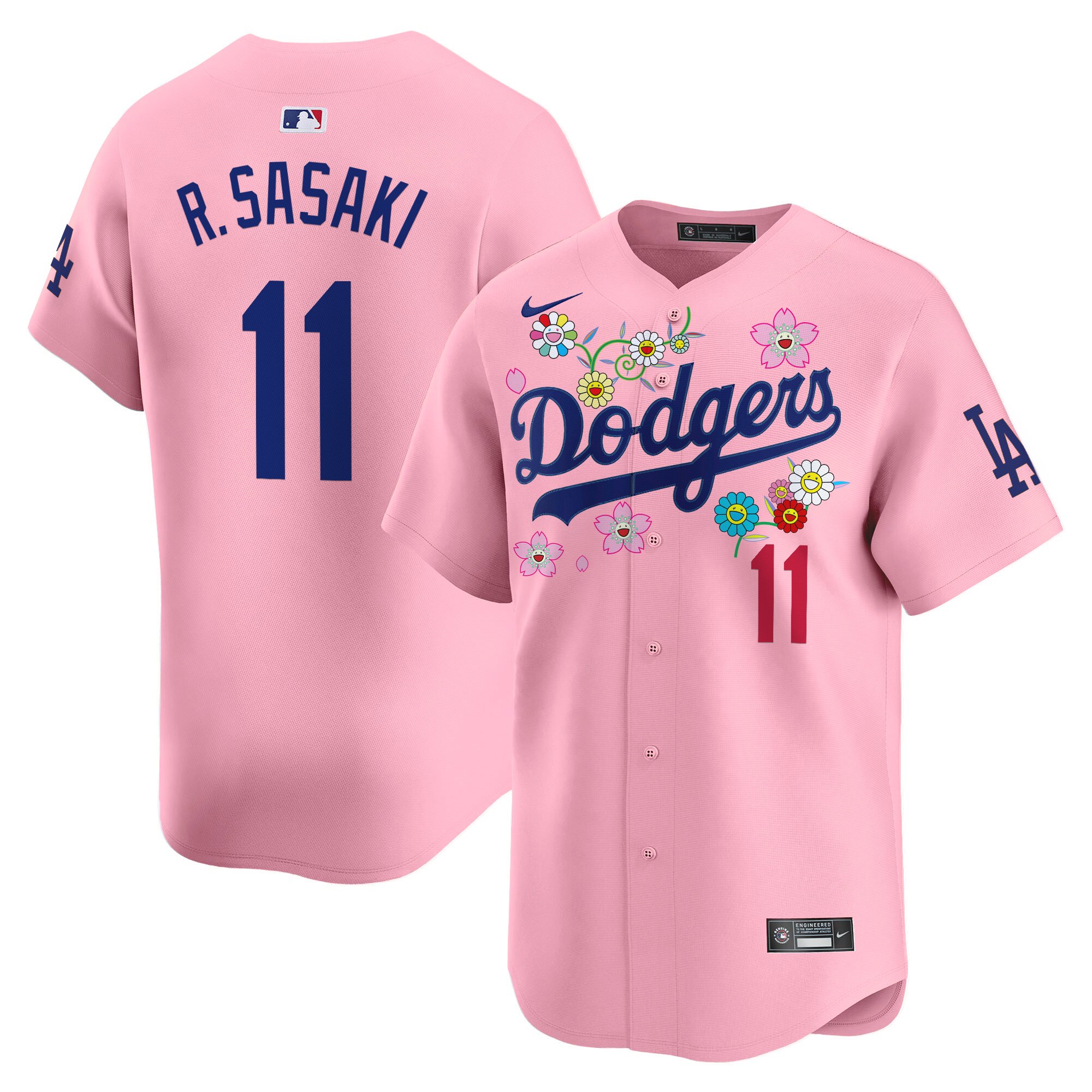 Roki Sasaki Men’s Los Angeles Dodgers x Takashi Murakami 2025 Vapor Premier Limited Cherry Blossom Jersey – Stitched